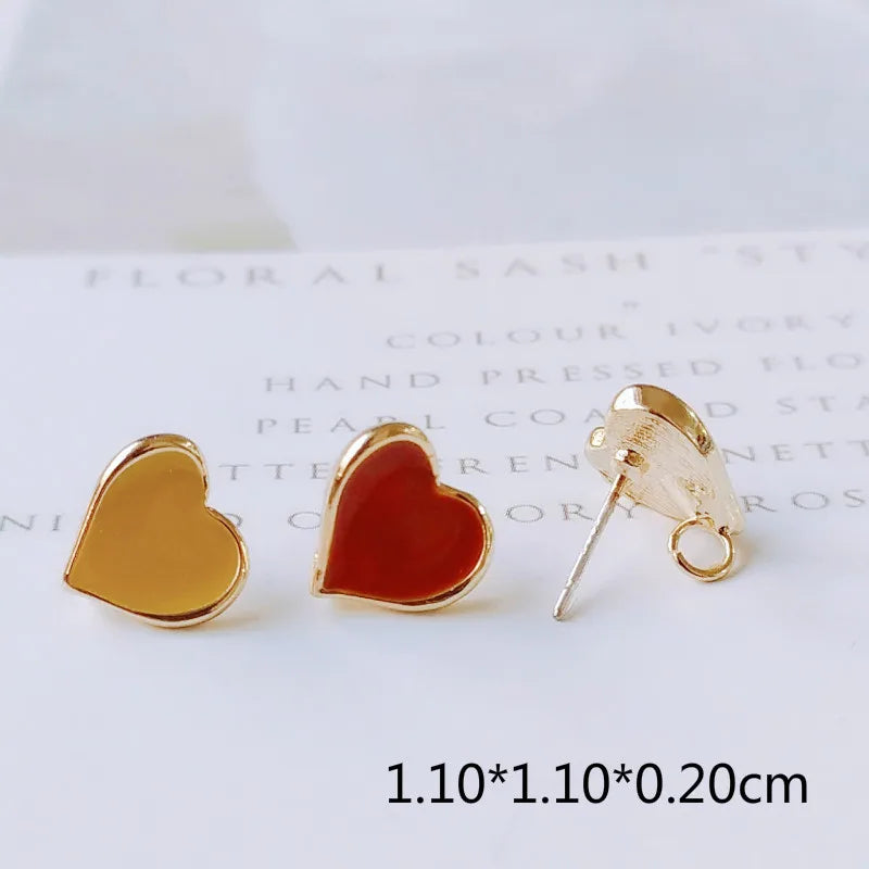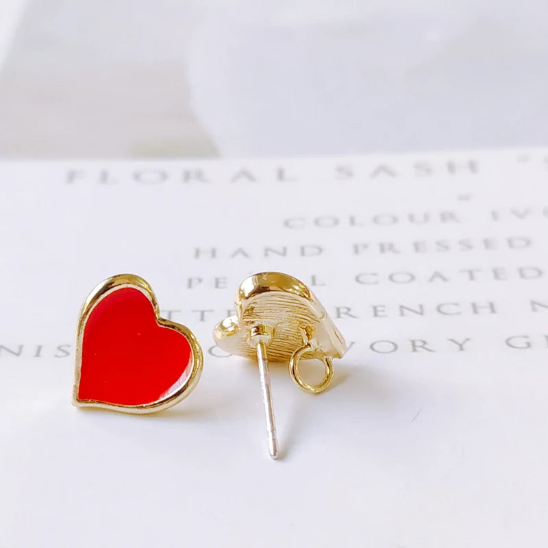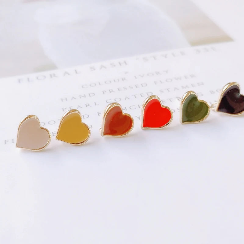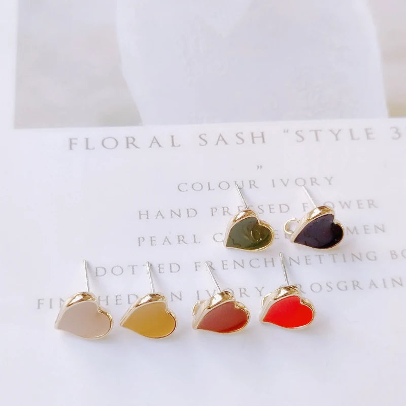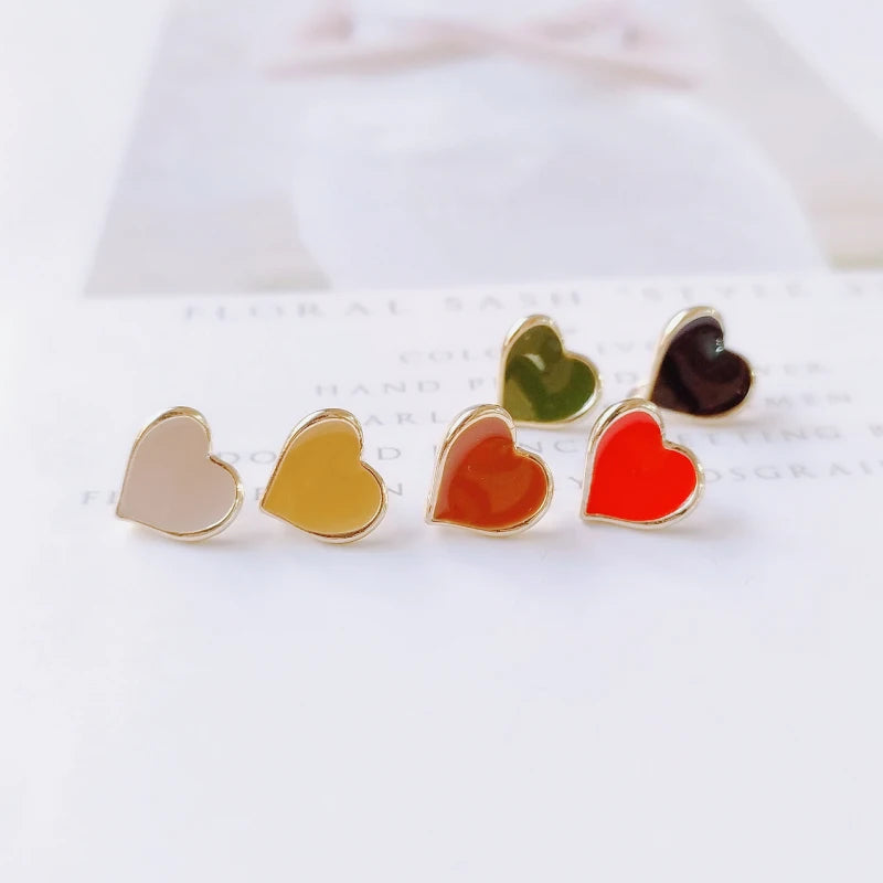 Enamel Heart Alloy Ring Stud Earring 6pcs