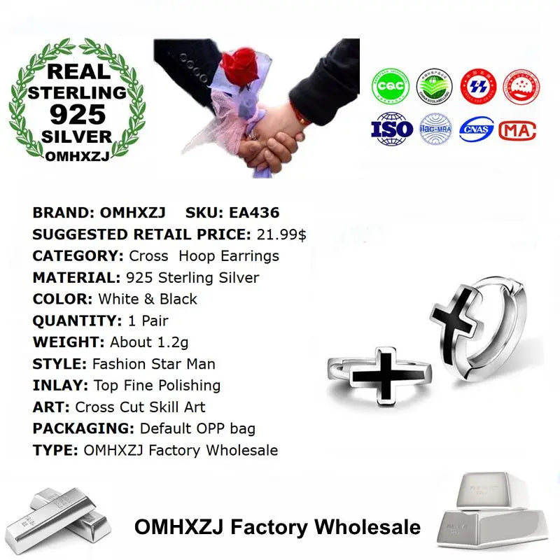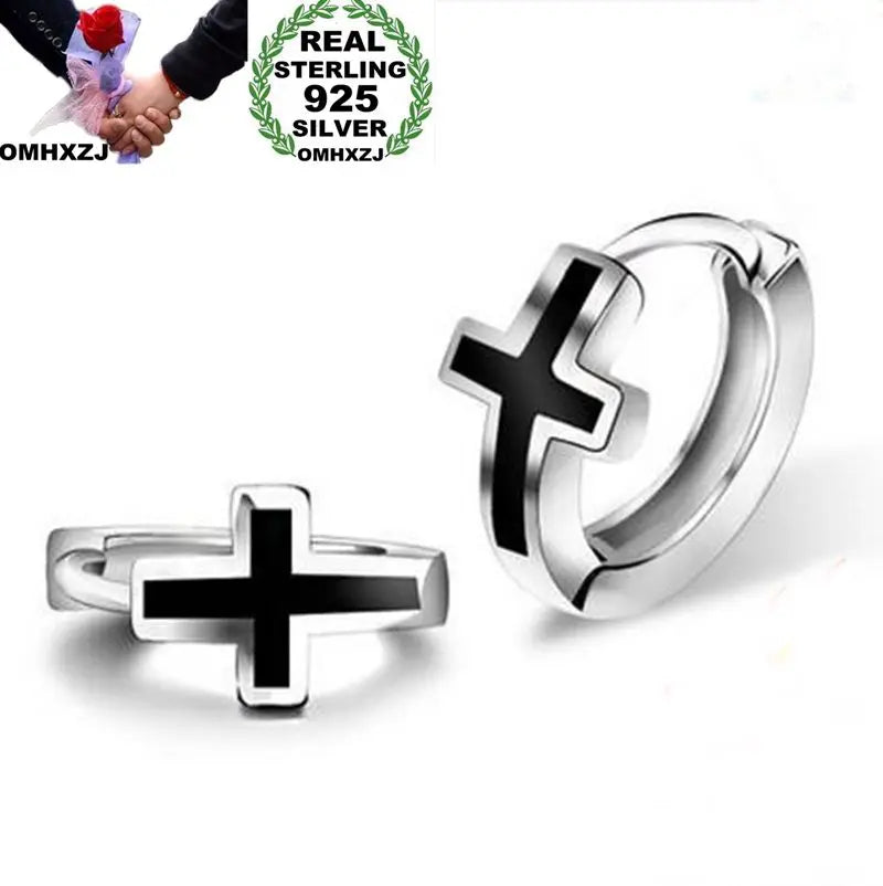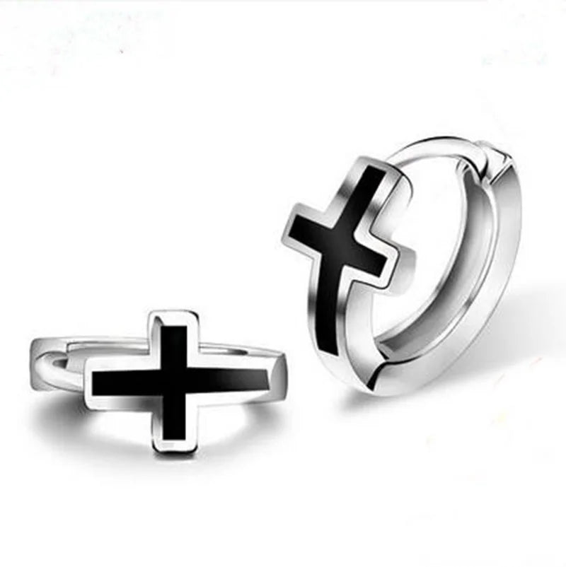 European Man Party Wedding Gift Cross Silver Hoop Earrings