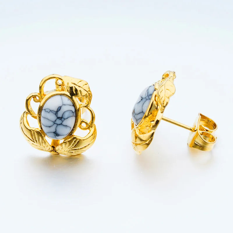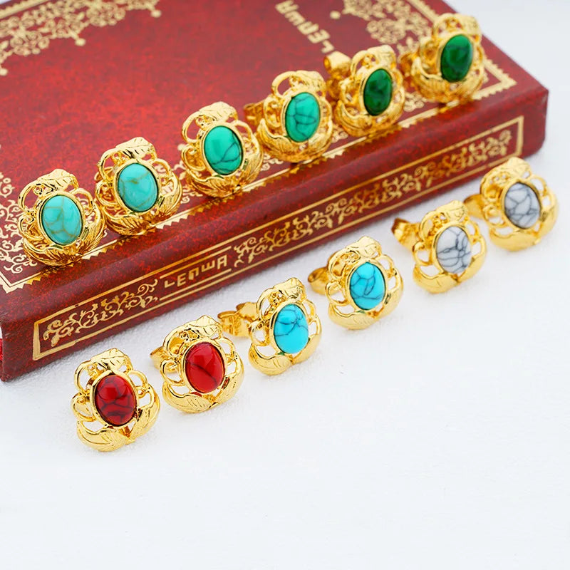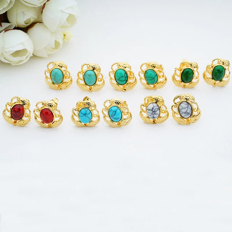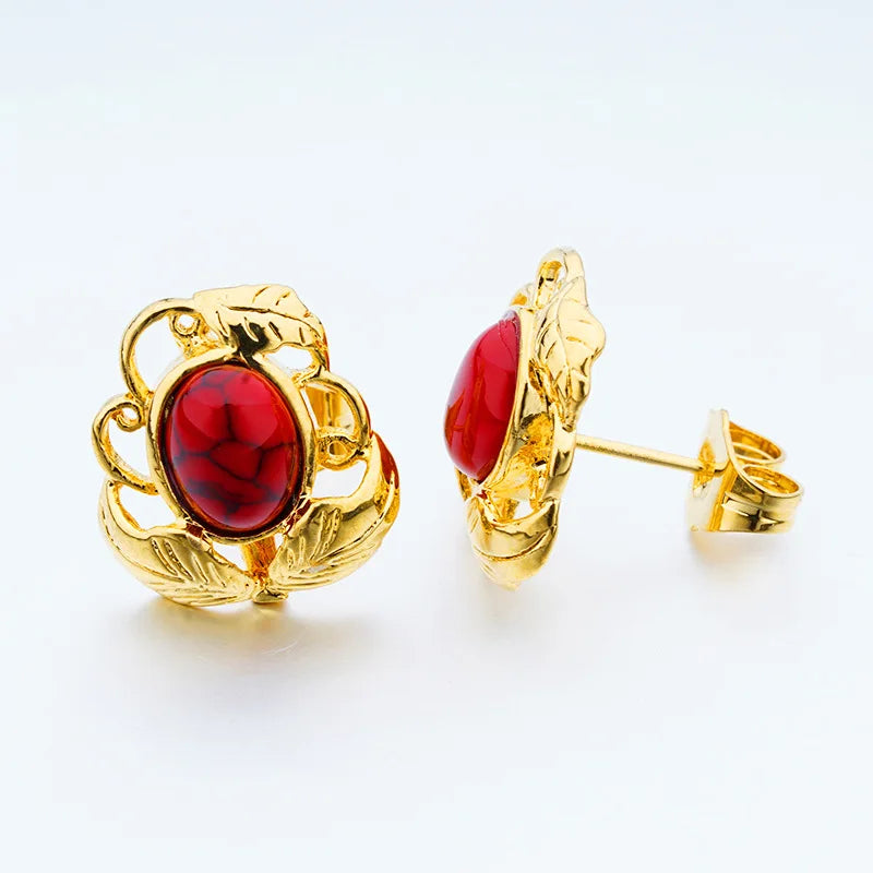 Add a touch of elegance to any outfit with these stunning 18KT stud earrings featuring red and green flower design. Perfect for parties, weddings, or as a special gift.