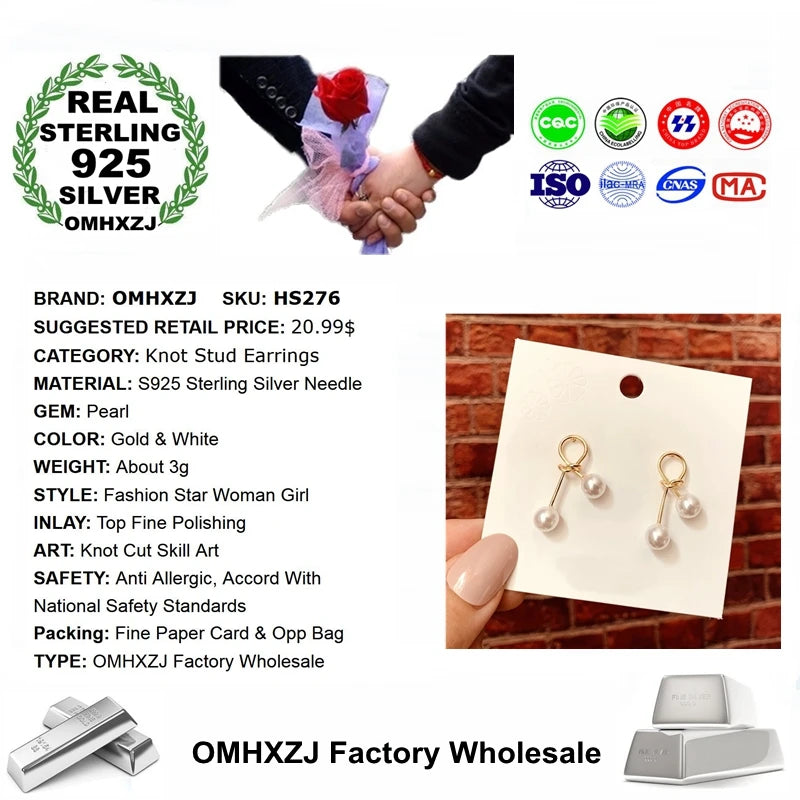 These elegant stud earrings feature a knot design with a lustrous pearl accent. Made of 925 sterling silver, these earrings are perfect for any special occasion, be it a birthday, wedding, or party.