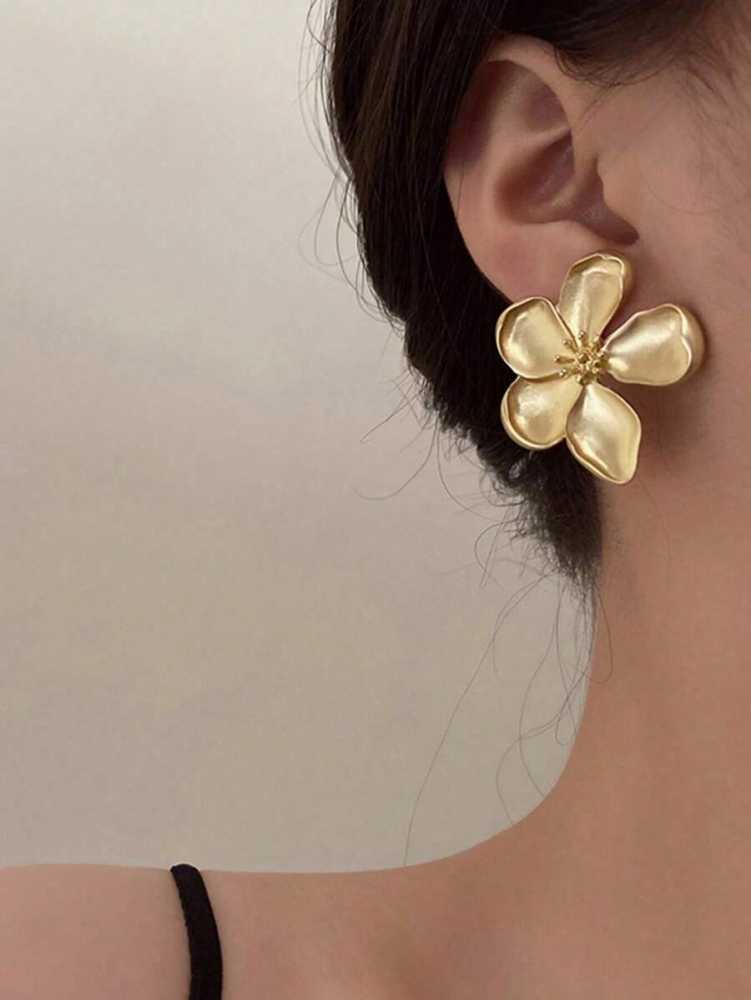 Floral Shaped Gold Plated Metallic Finished Earring For Women
