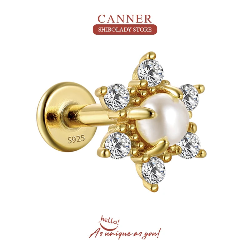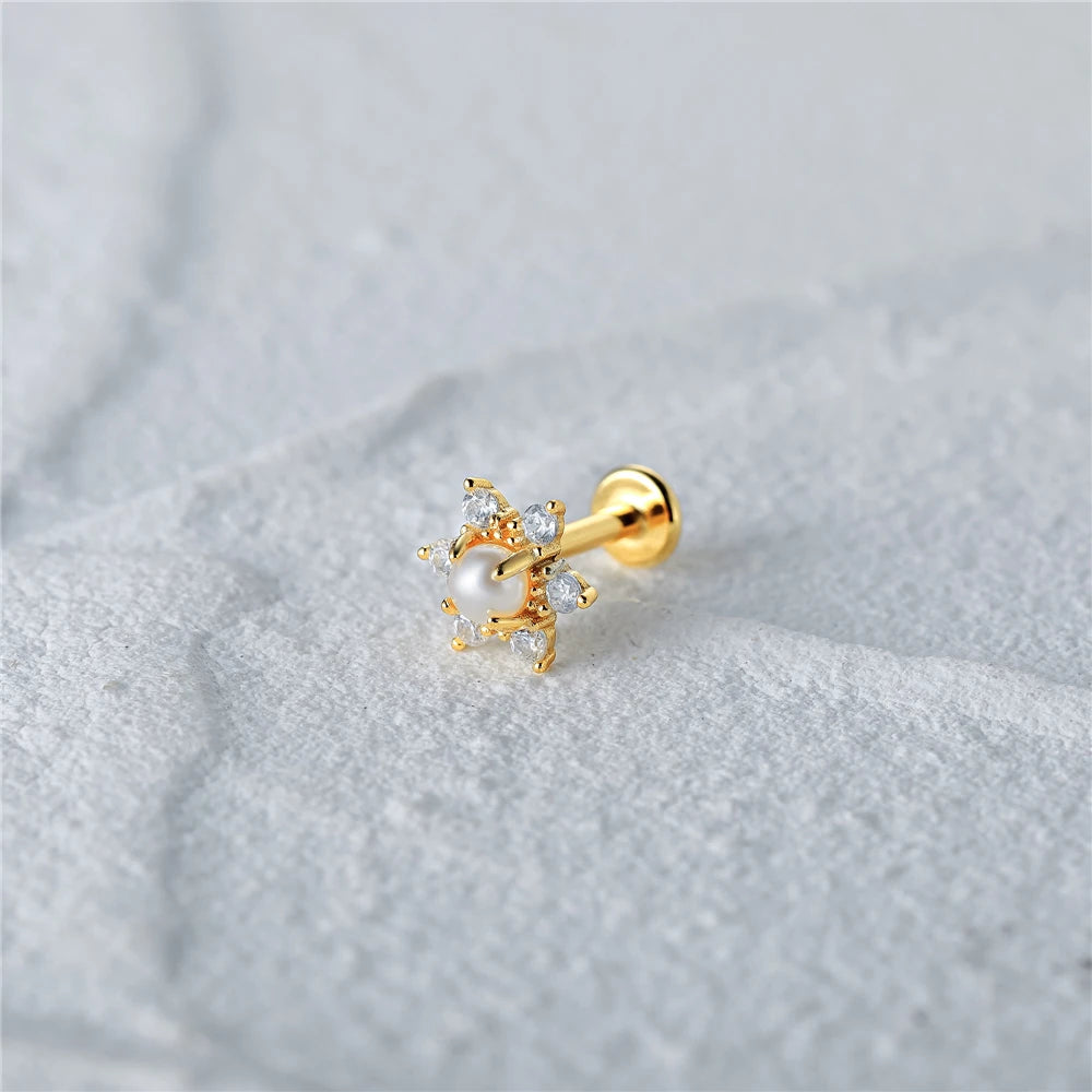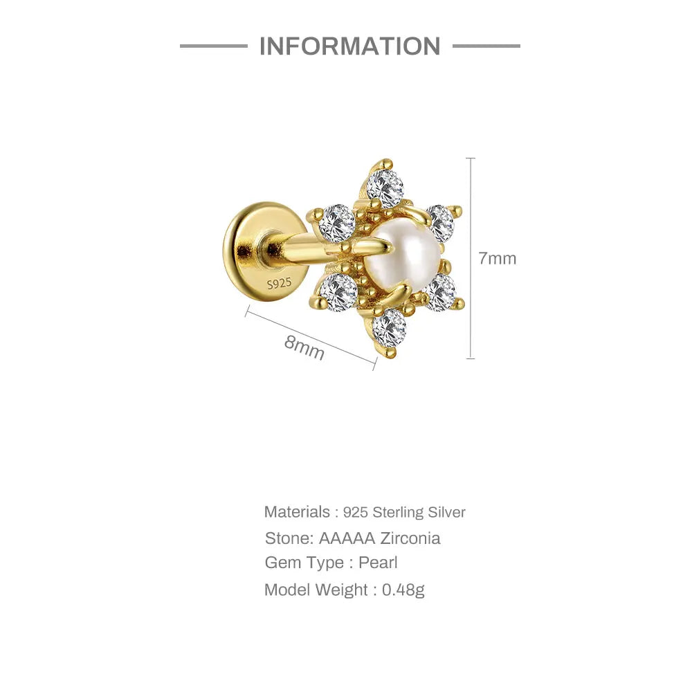 - 925 sterling silver earring with flower and pearl design