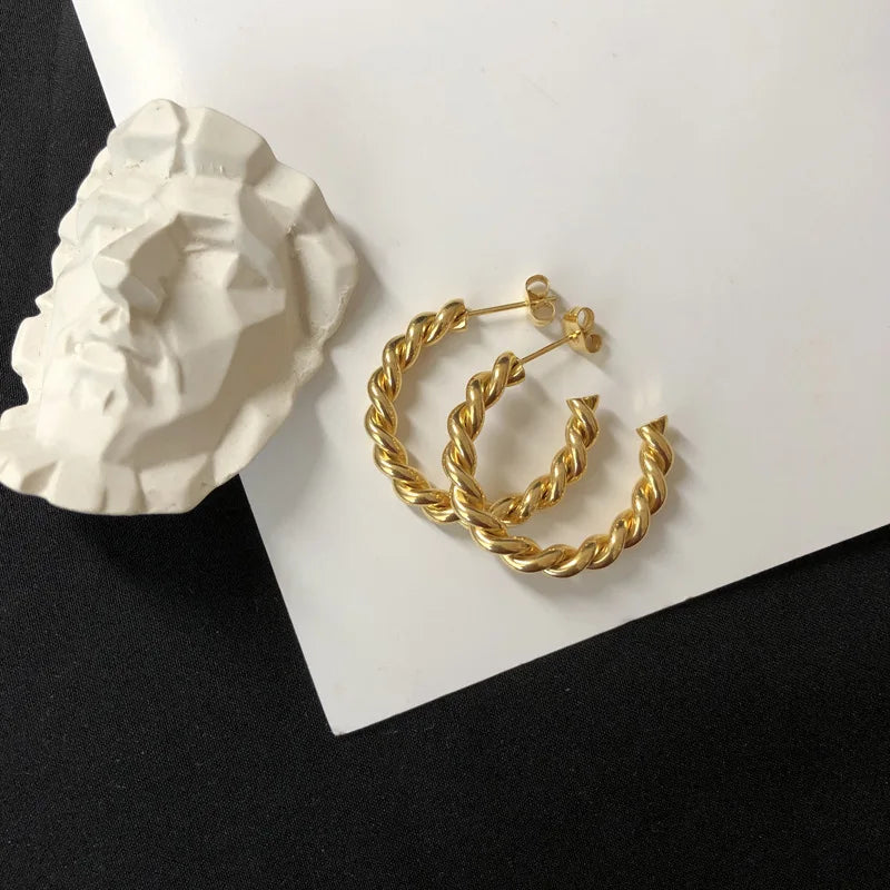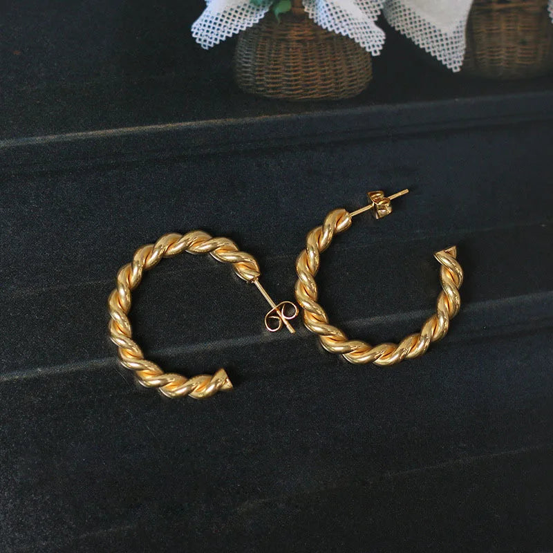 French Twisted Hypoallergenic CC Hoop Earrings 18K Stainless Steel