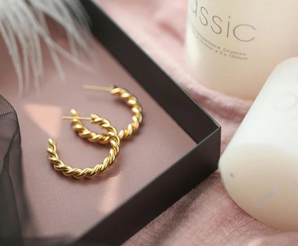 Elevate your style with these chic hoop earrings featuring a twisted design. Made from tarnish-resistant stainless steel with 18K gold accents, these earrings are hypoallergenic and perfect for daily wear.