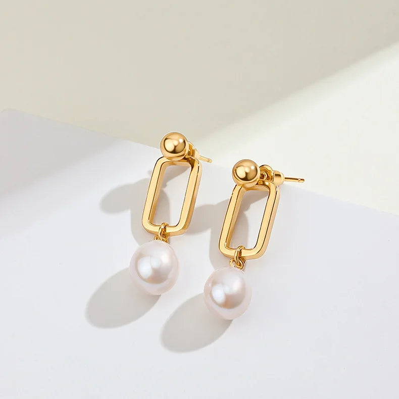 Add a touch of elegance to your summer outfits with these geometric fresh water pearl earrings.