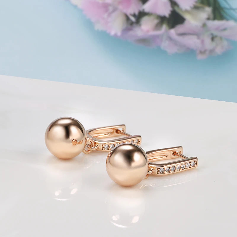 Add a touch of elegance to your look with these stylish geometric pendant earrings. Made of 585 rose glossy solid ball hang ear with tiny zircon earri, these earrings are perfect for any occasion.