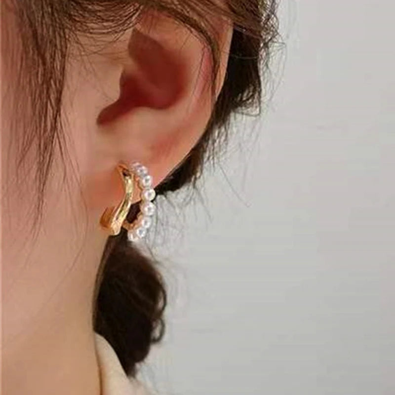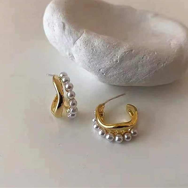 Add a touch of romance to your look with these stunning geometric wave pearl earrings. Crafted with high-quality 14K gold plating and featuring S925 silver needle accessories, these earrings are perfect for any occasion.