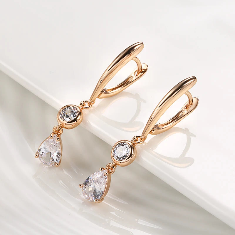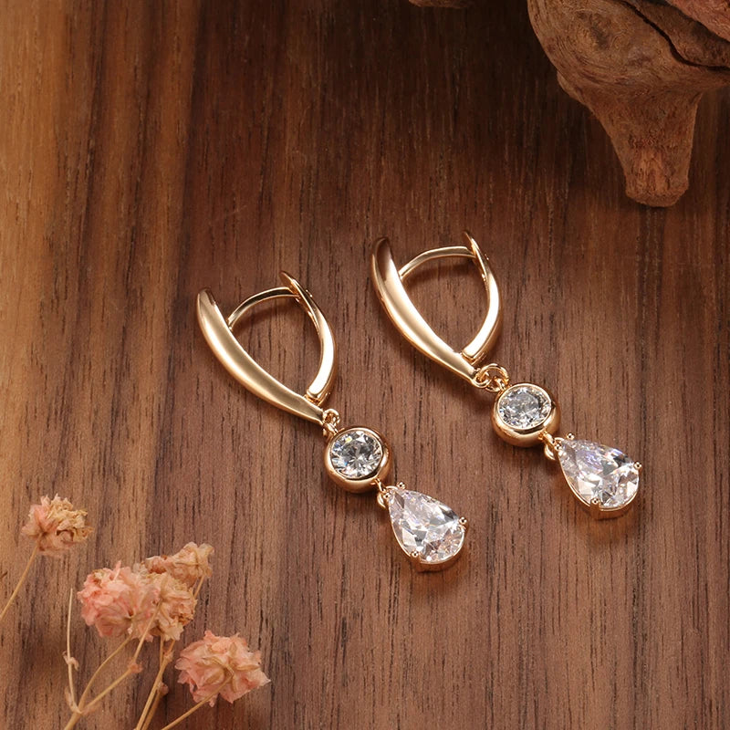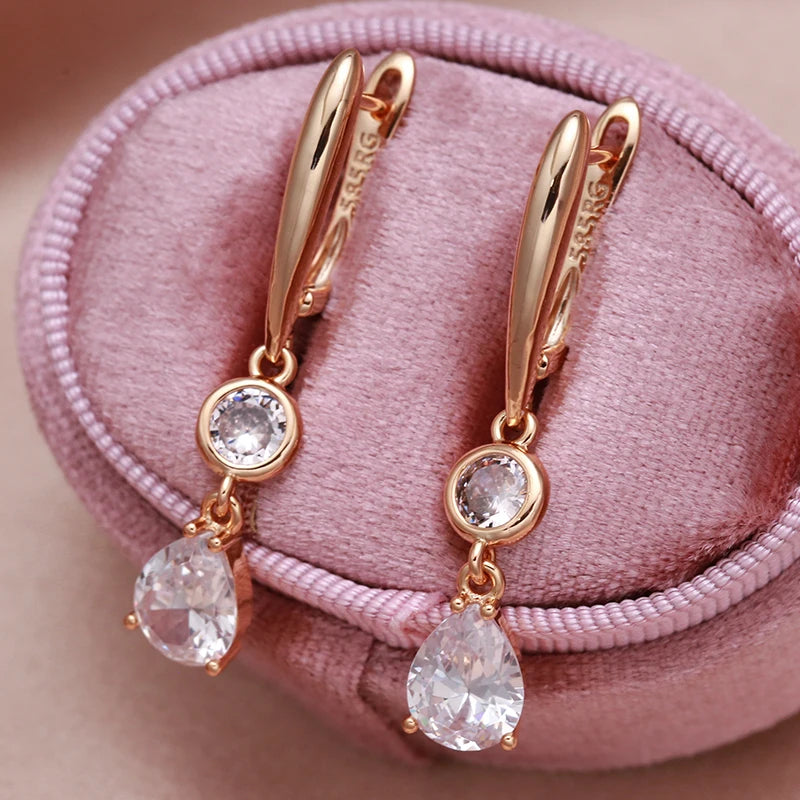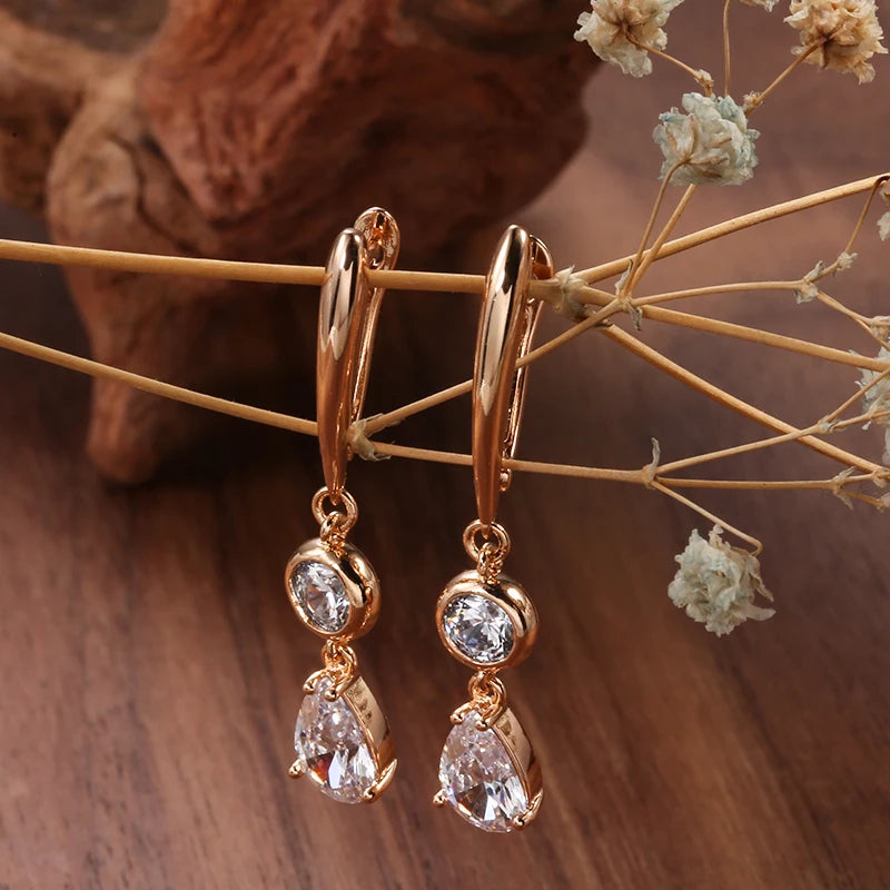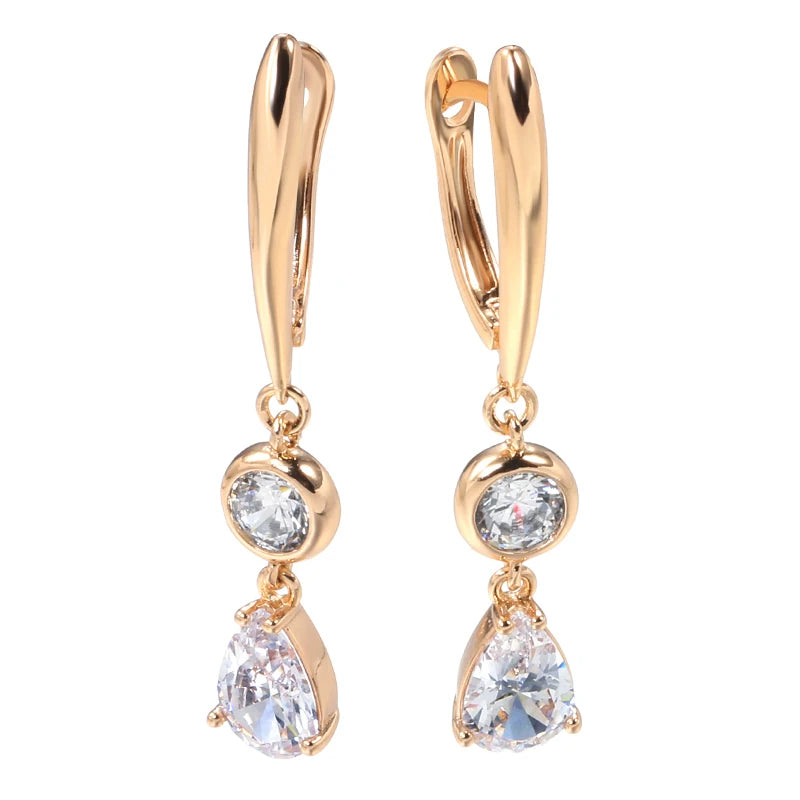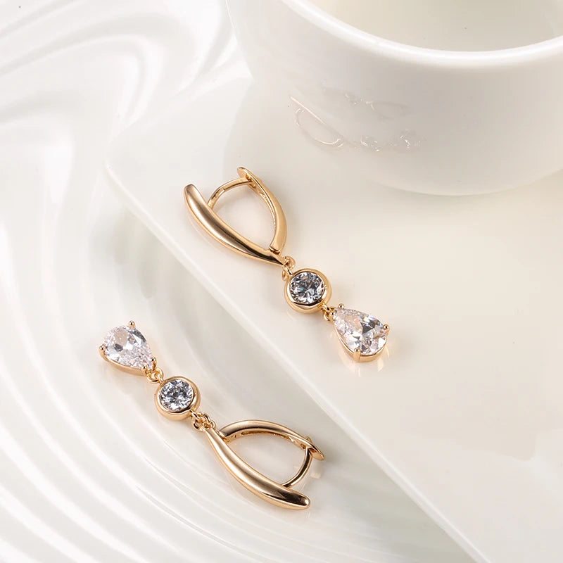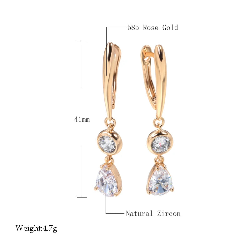 Elegant and glossy natural zircon dangle earrings perfect for weddings. Made with high-quality materials.