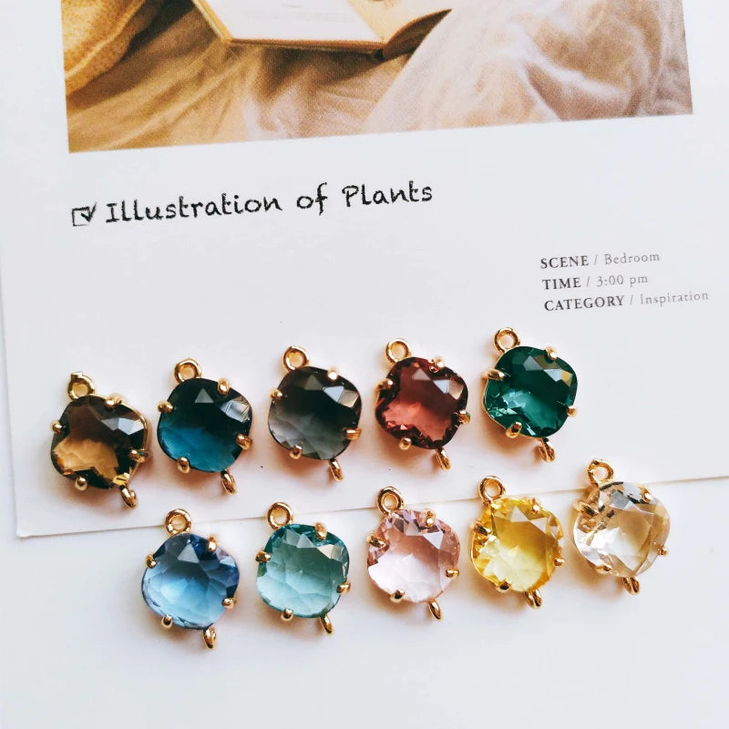 This set includes 6 glass mixed rhombus eardrop alloy charms for making DIY necklaces and earrings. Perfect for jewelry making projects.