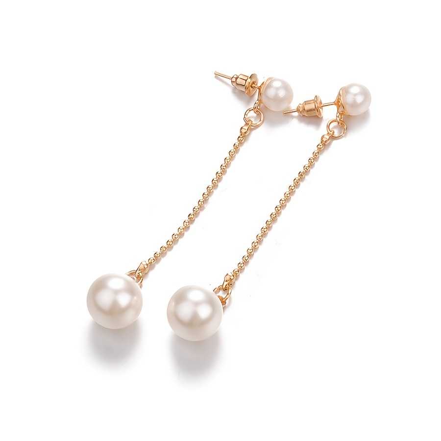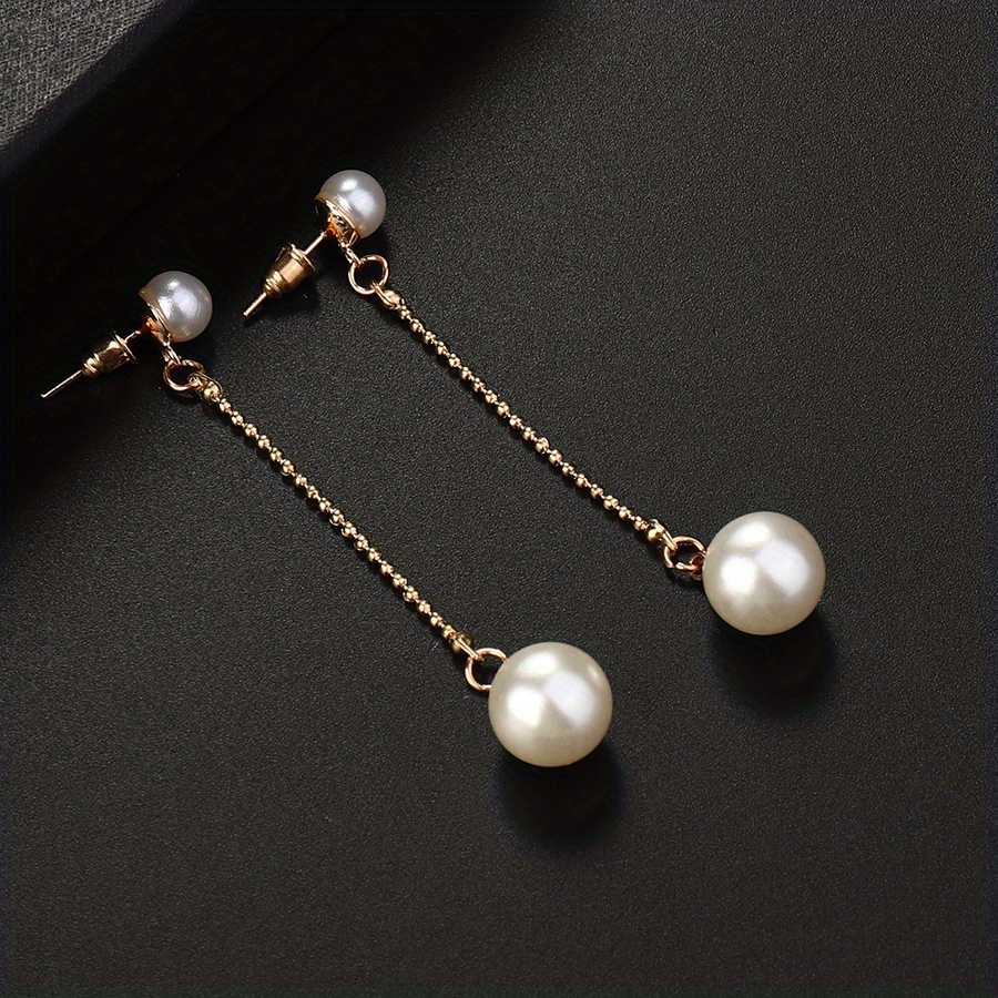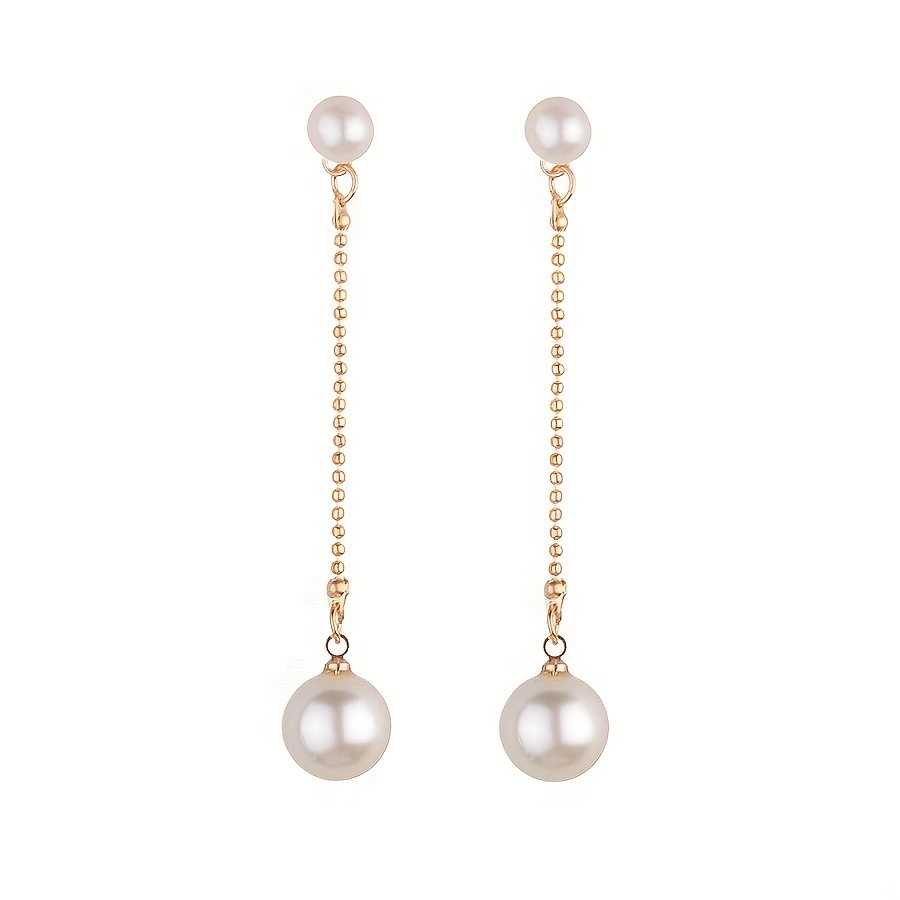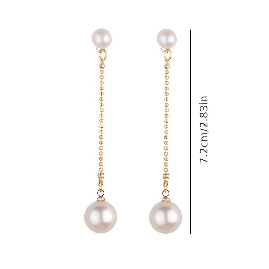Gold Plated Faux Pearl Long Dangle Earrings Delicate Gift for Women