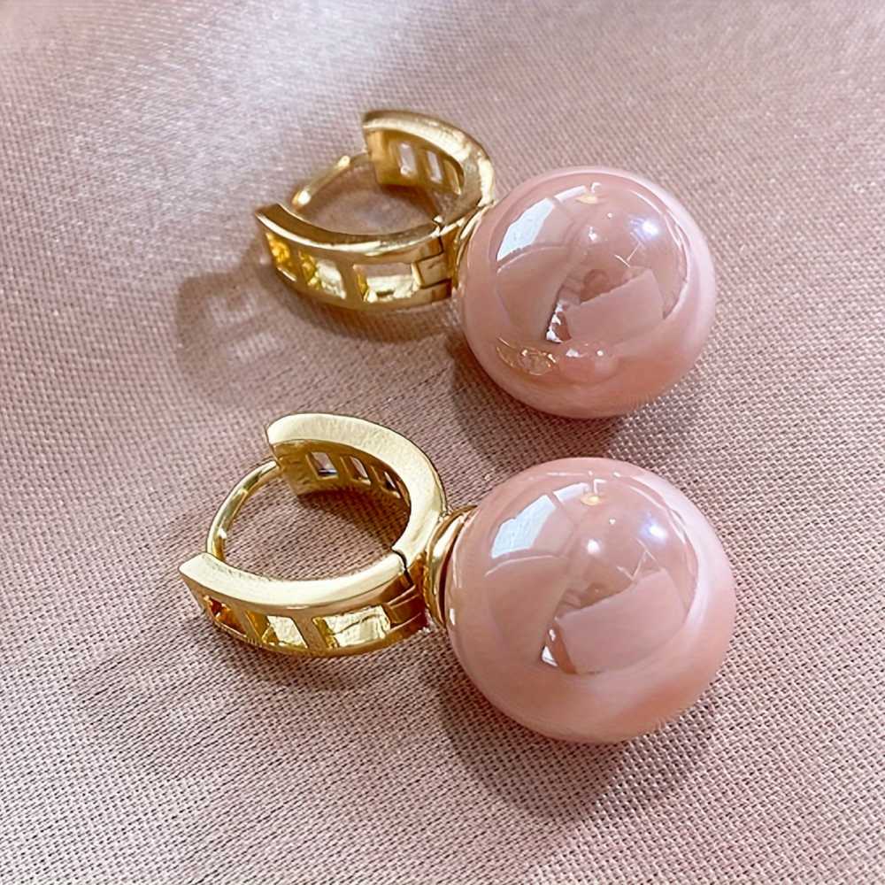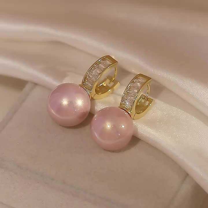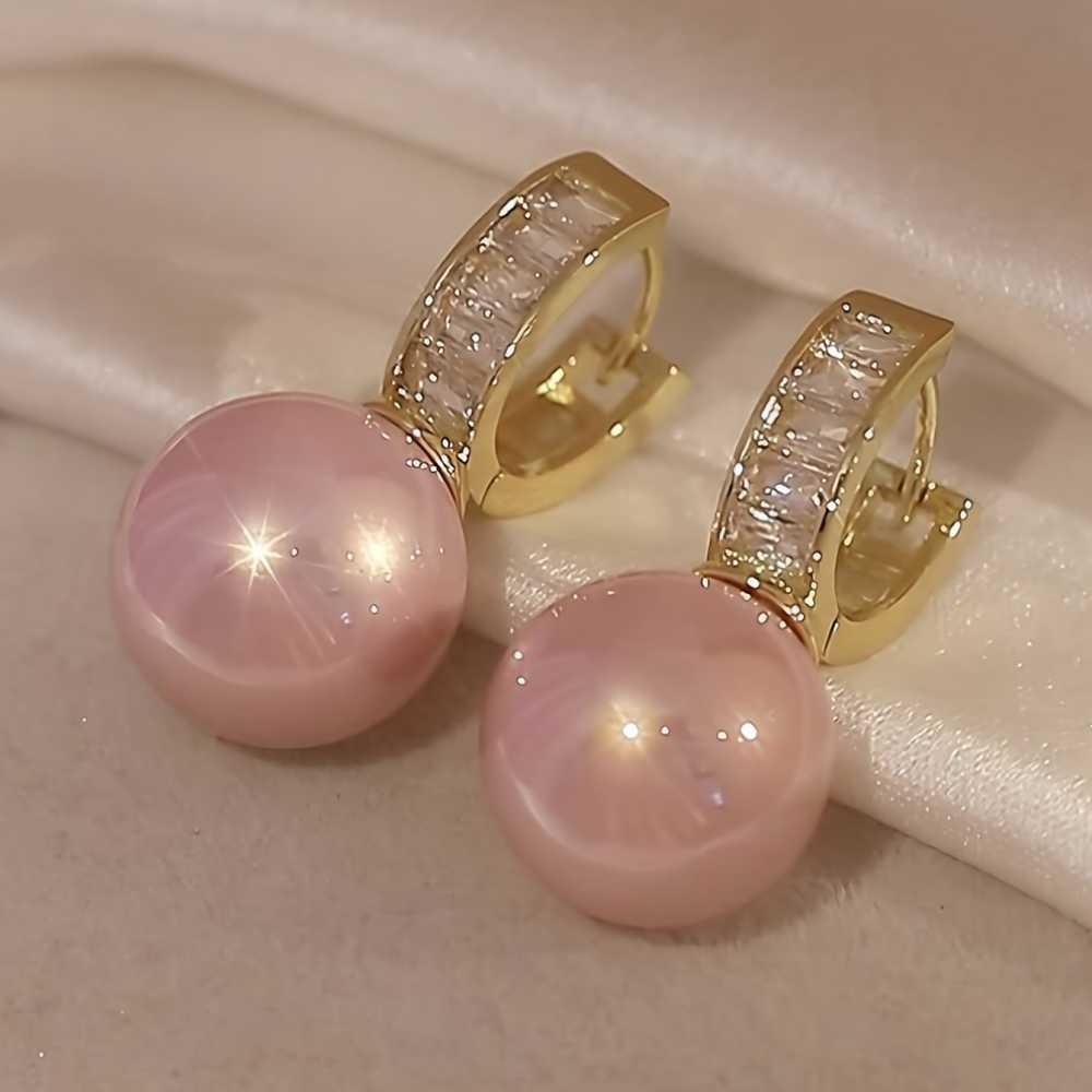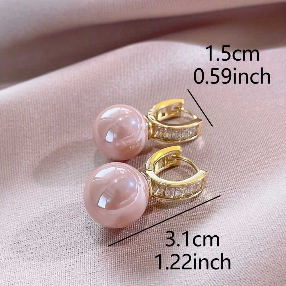 Gold Plated Hoop Earrings with Imitation Pink Pearl and Zirconia for Women