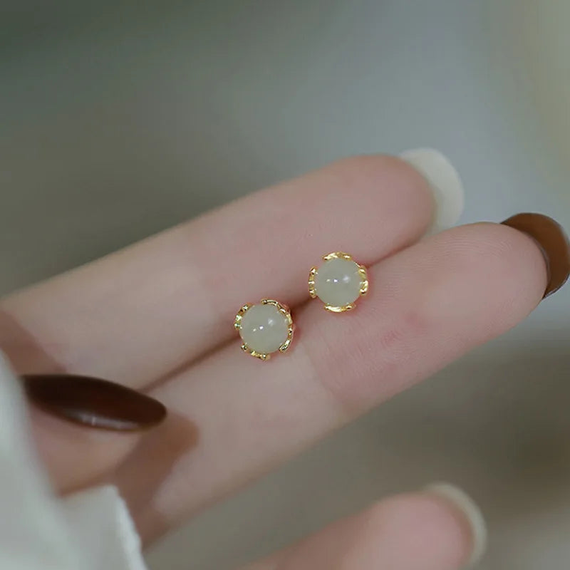 Elegant sterling silver stud earrings featuring green jadeite stones for women.