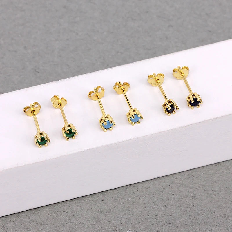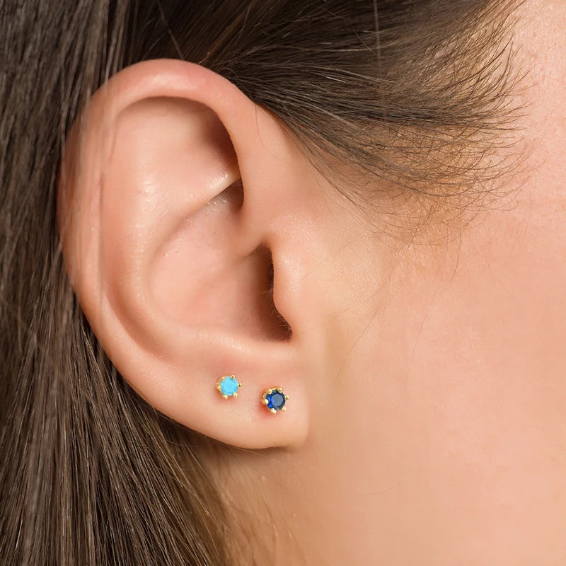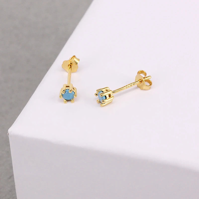 Elegant and charming ear piercing earrings crafted from 925 sterling silver featuring green turquoise and zircon CZ stones. Perfect for women.