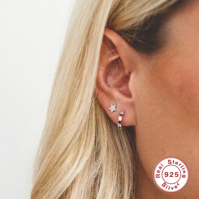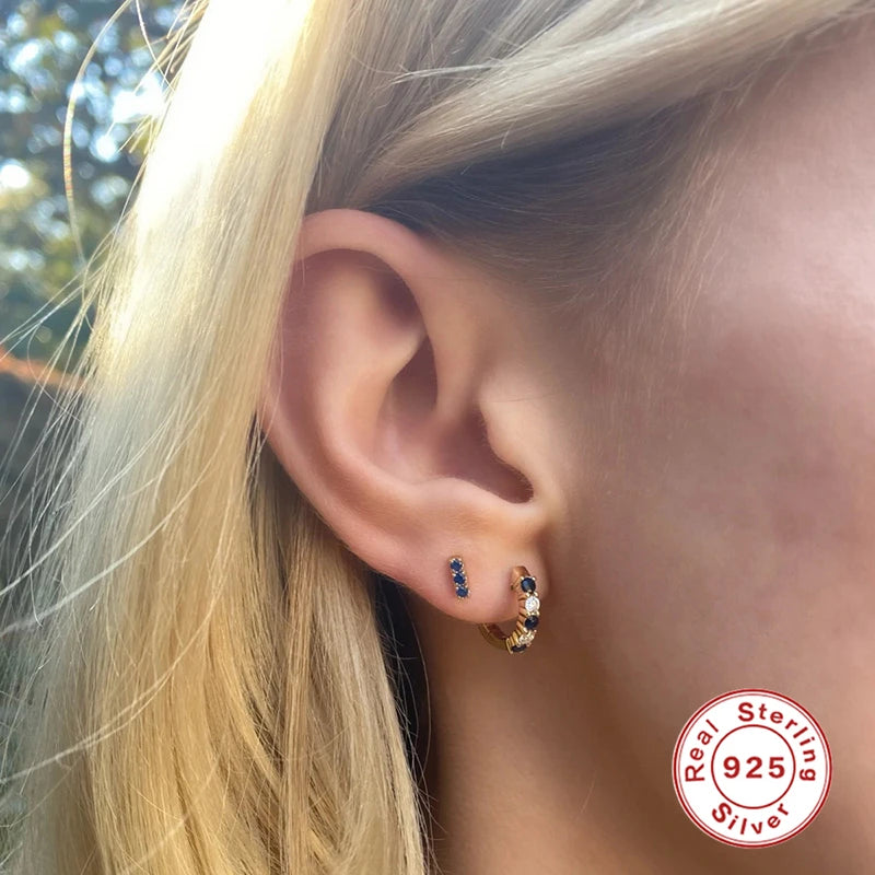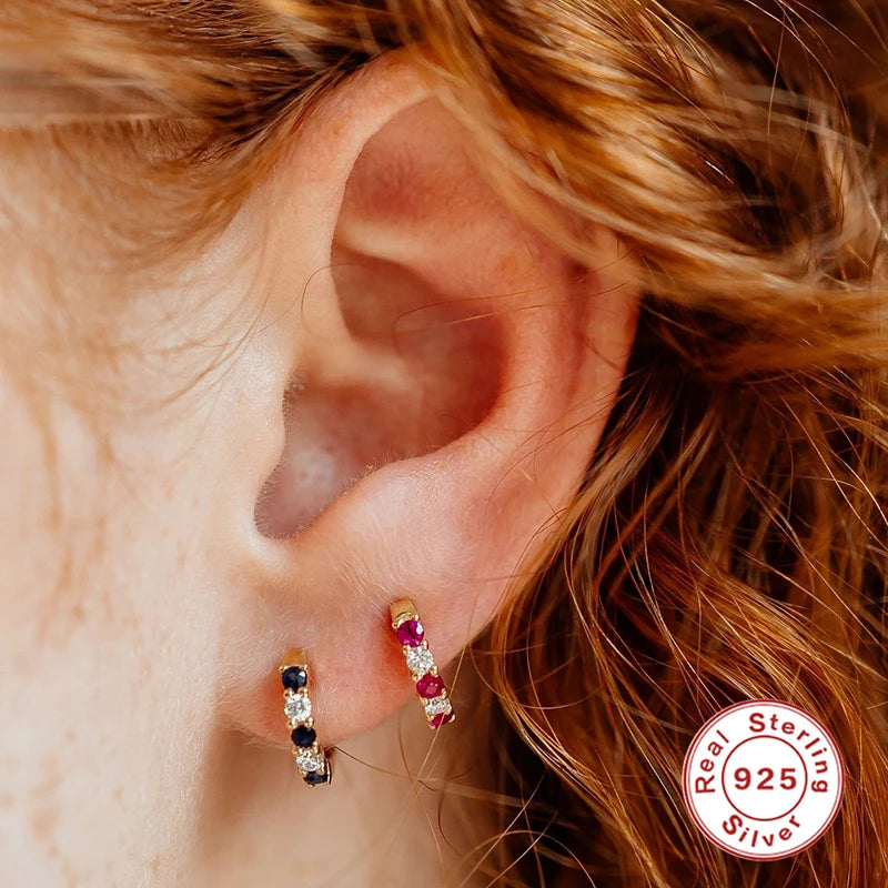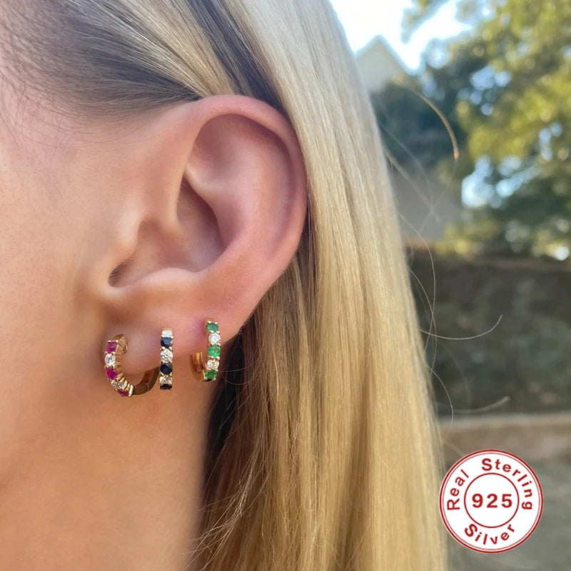Green Zircon Earrings 925 Silver Hoops Piercing Jewelry