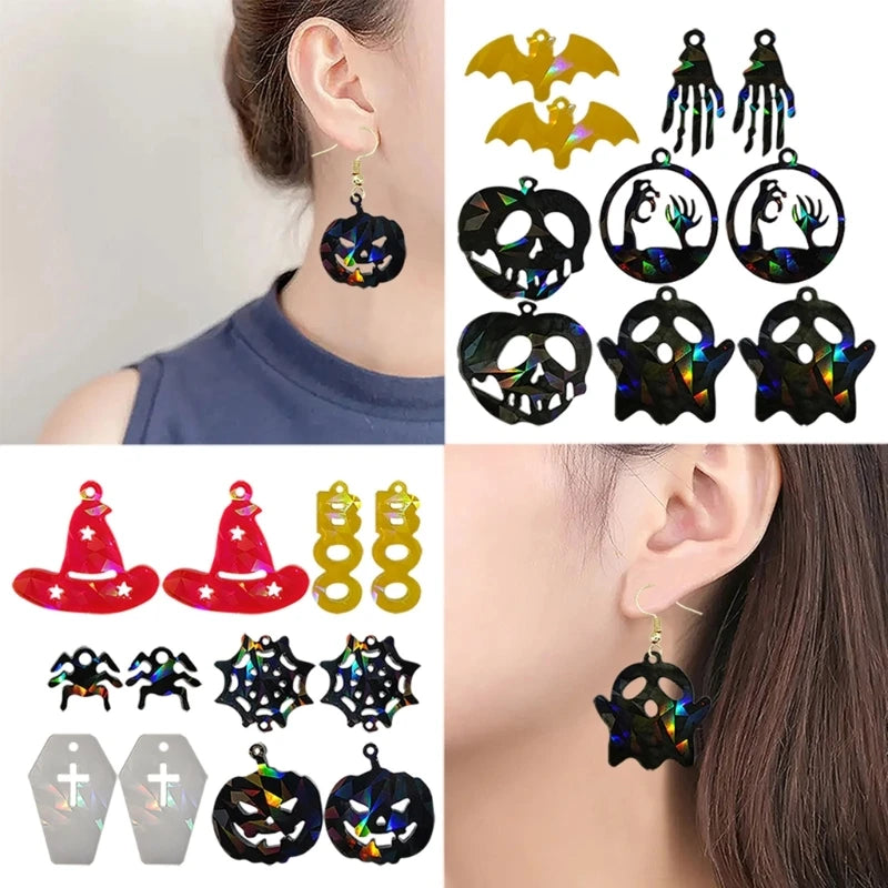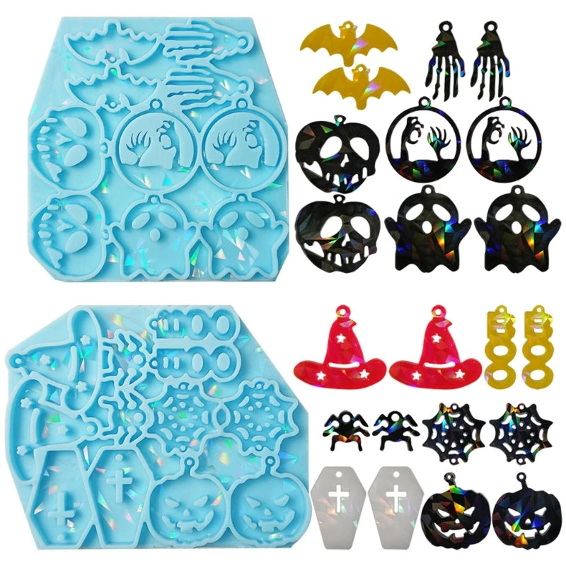 Create spooky Halloween-themed earrings and pendants with this silicone casting mold. Ideal for keychains and jewelry making.