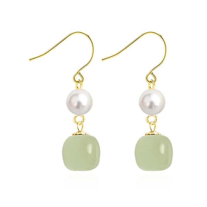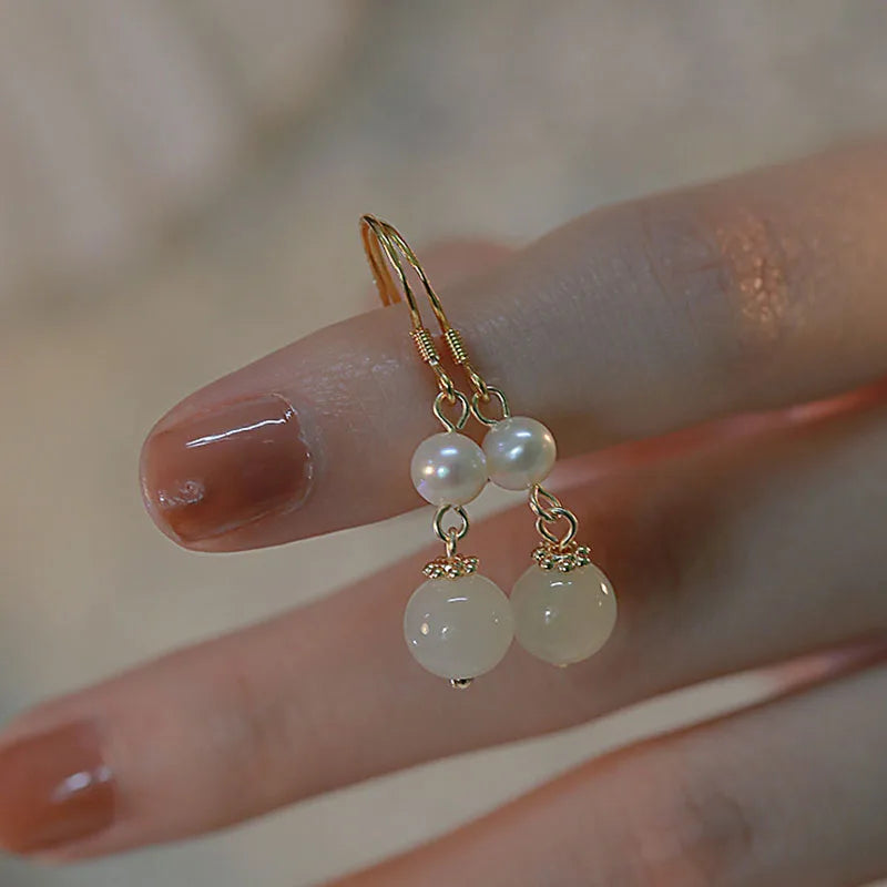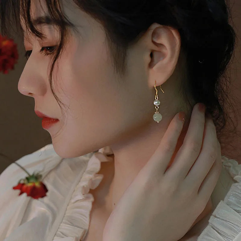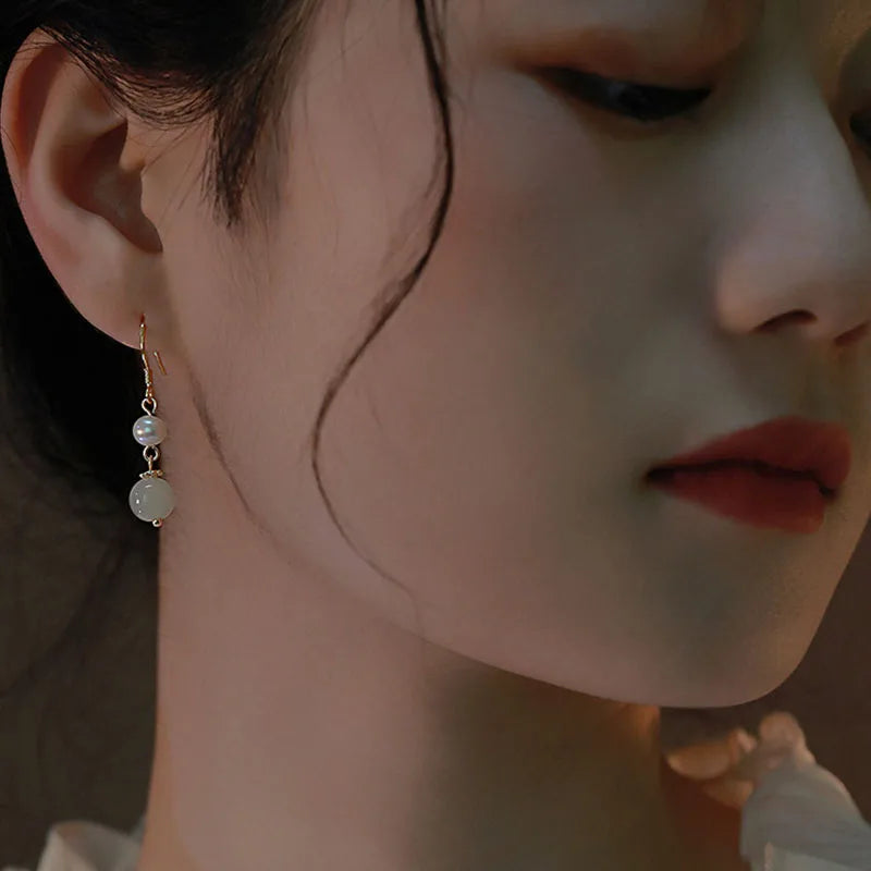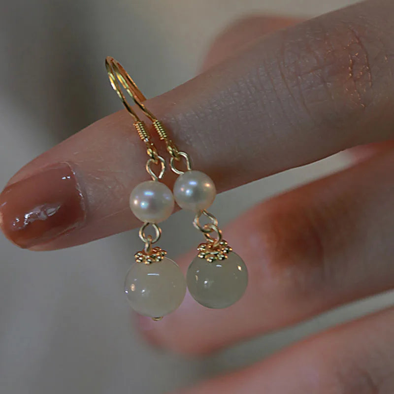 Exquisite Hetian Jade earrings featuring round pearl design, perfect for women and girls. An elegant gift that symbolizes beauty and sophistication.