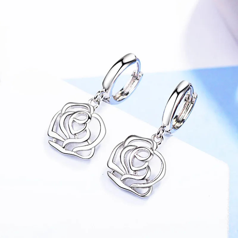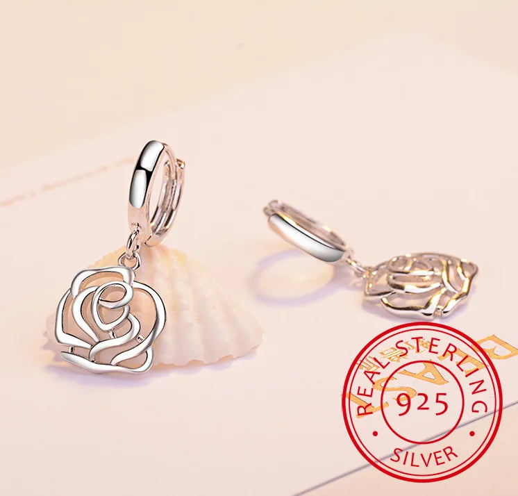 These elegant drop earrings feature a hollow flower pendant design, perfect for weddings, parties, or everyday wear. Made from high-quality 925 sterling silver, they exude sophistication and charm.