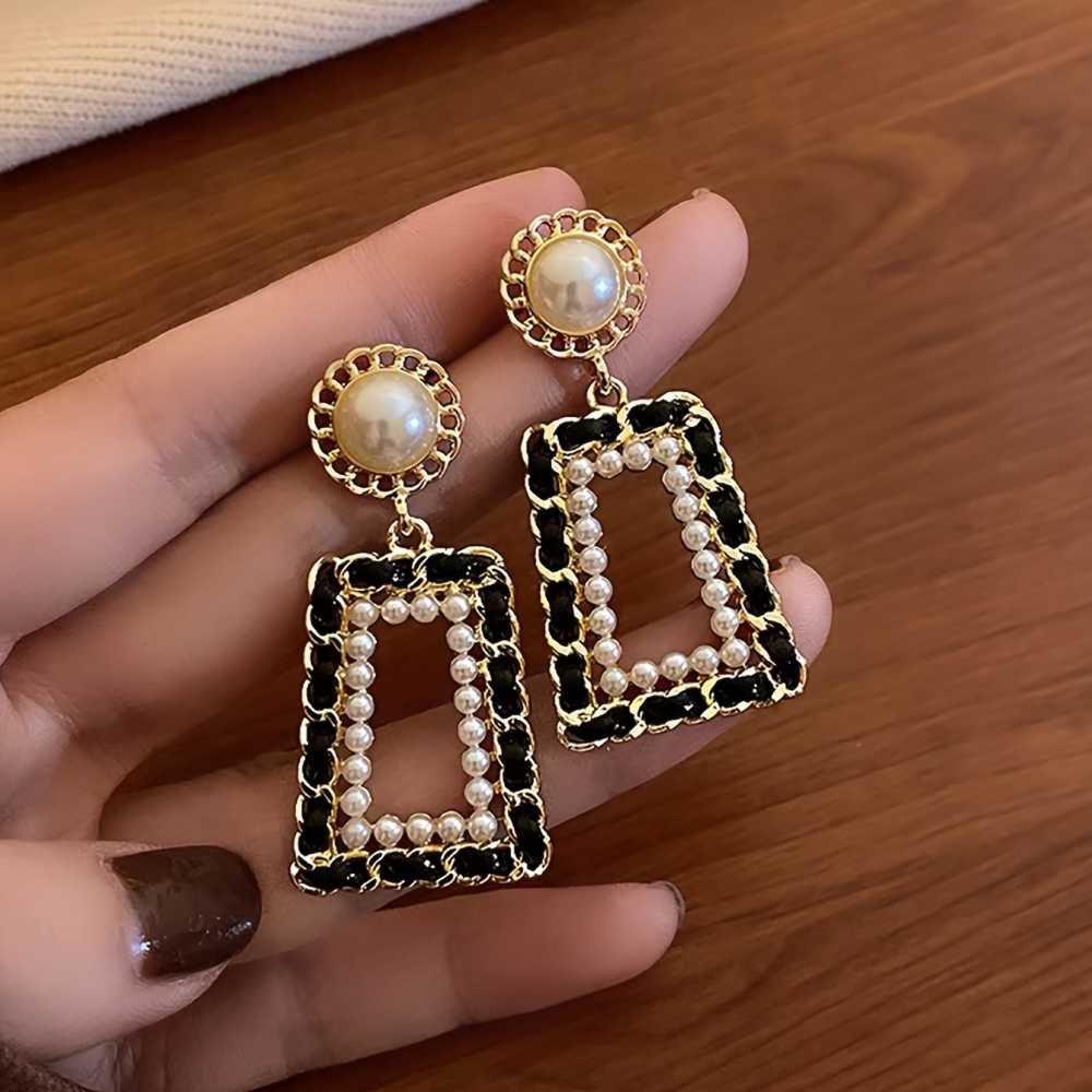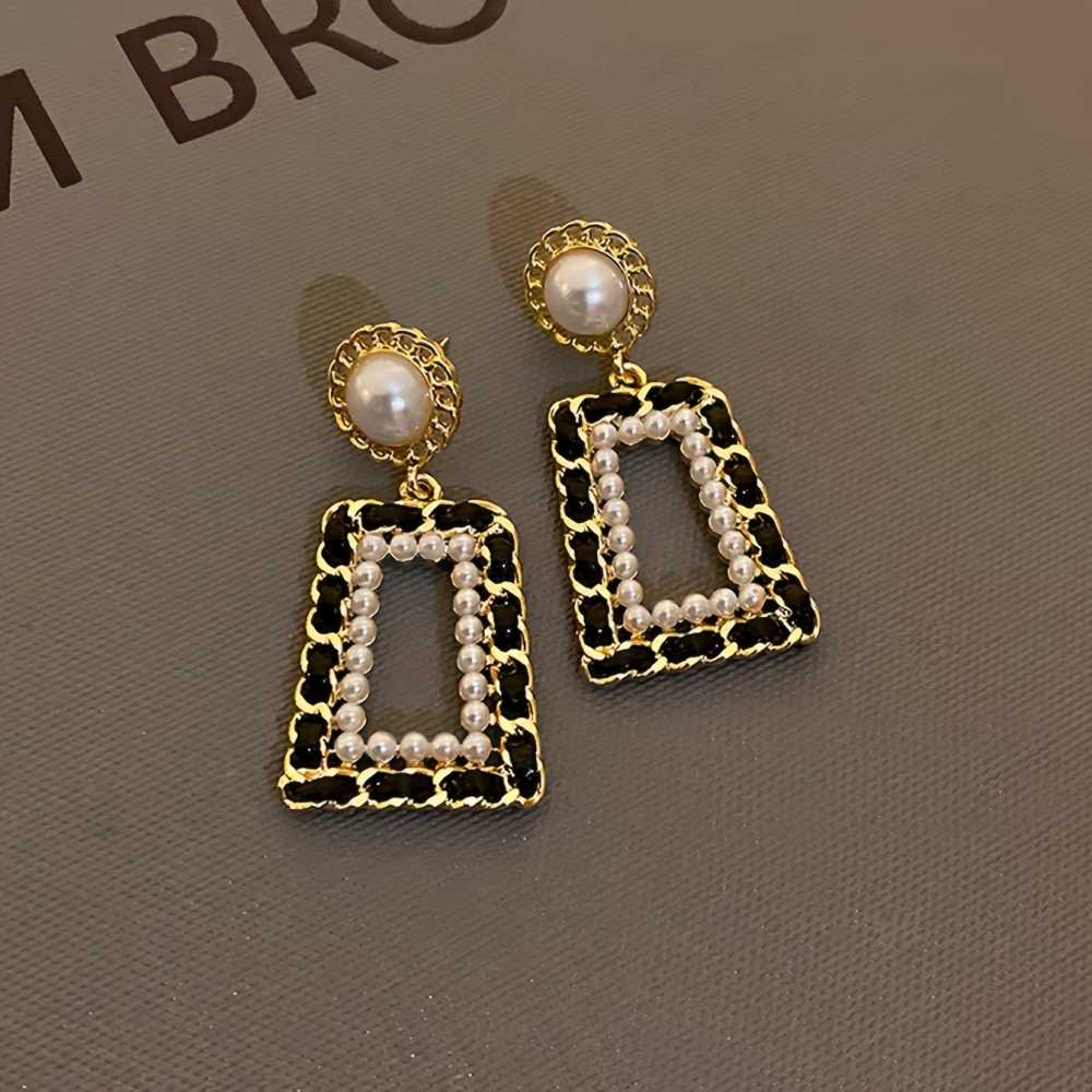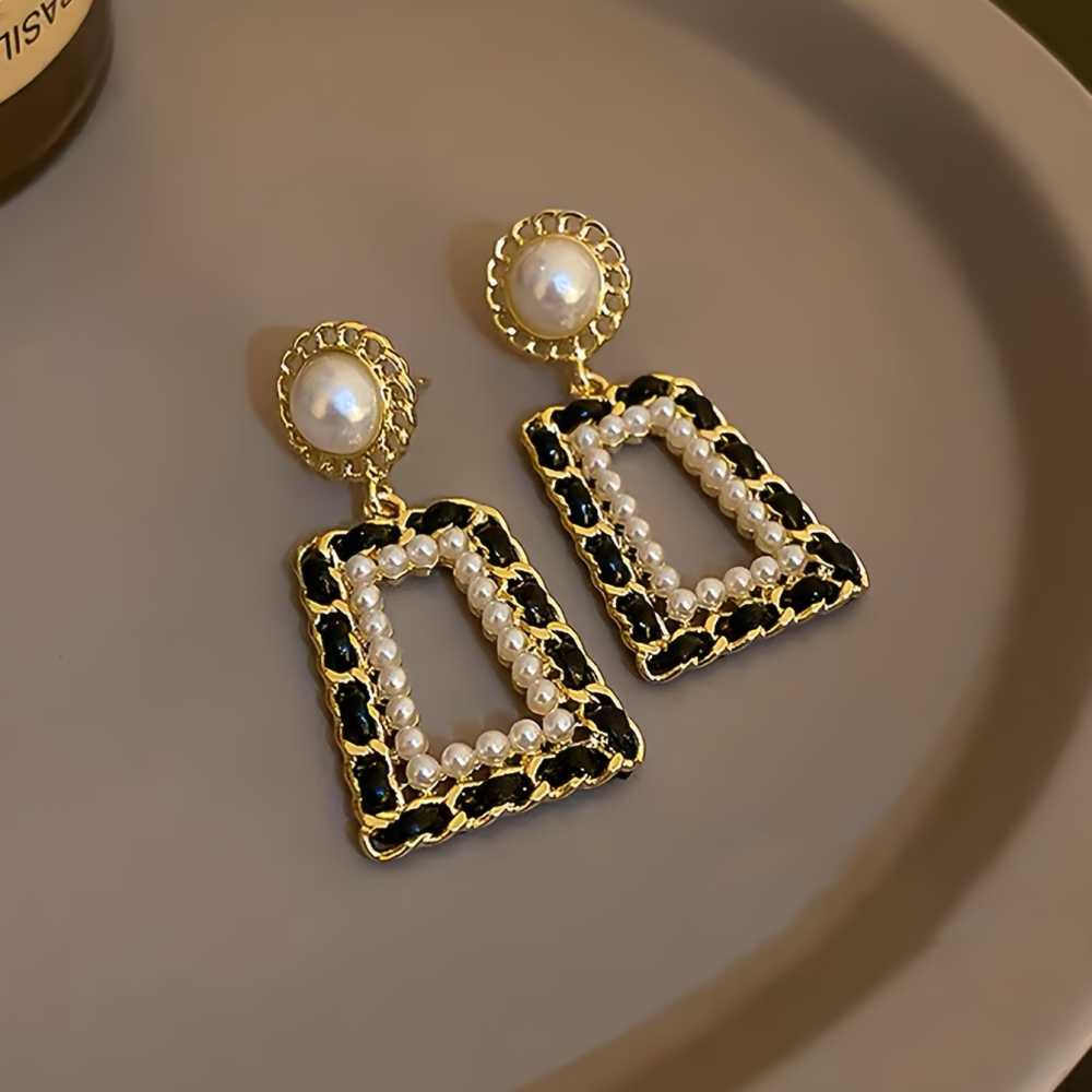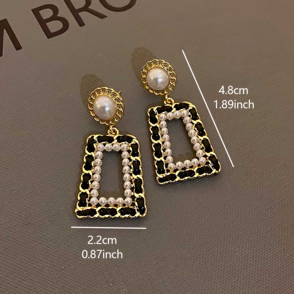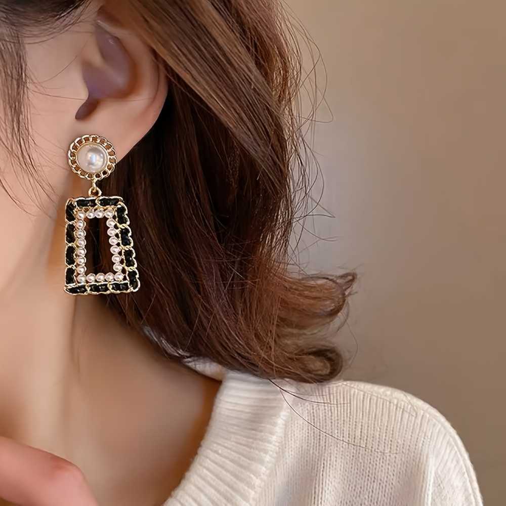 The Hollow Geometric Shape Faux Pearl Dangle Earrings are a modern take on elegance, expertly designed to enhance any outfit with a chic and sophisticated flair. These earrings feature a striking hollow geometric design that adds an artistic touch, making them a standout accessory. Crafted from high quality zinc alloy, these earrings boast a lightweight feel, ensuring comfort for all day wear. The unique geometric shape offers a contemporary look that appeals to fashion forward individuals, while the faux pearl accents add a timeless elegance. The pearls, with their soft luster, beautifully contrast with the sleek lines of the geometric design, creating a harmonious balance. Perfect for both casual and formal occasions, these dangle earrings transition effortlessly from day to night.