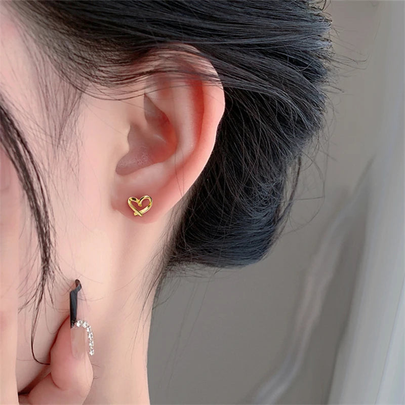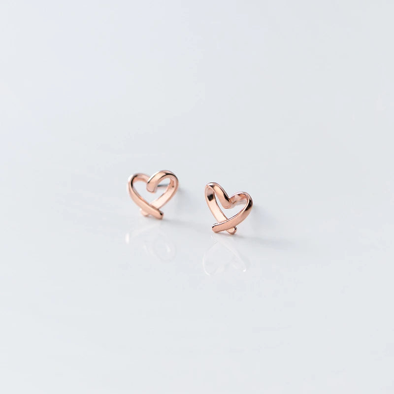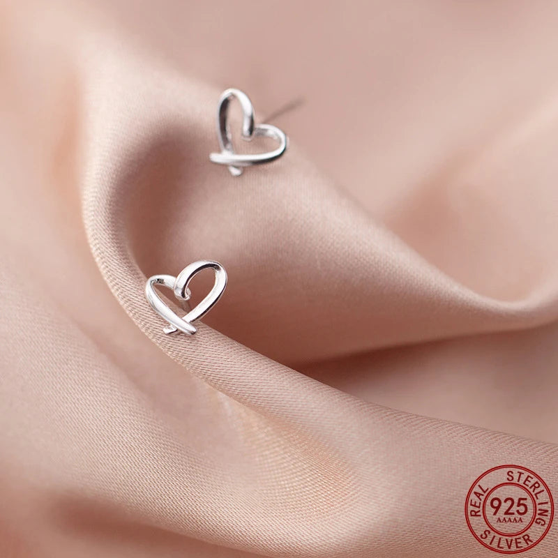Irregular Heart 925 Sterling Silver Stud Earrings for Women