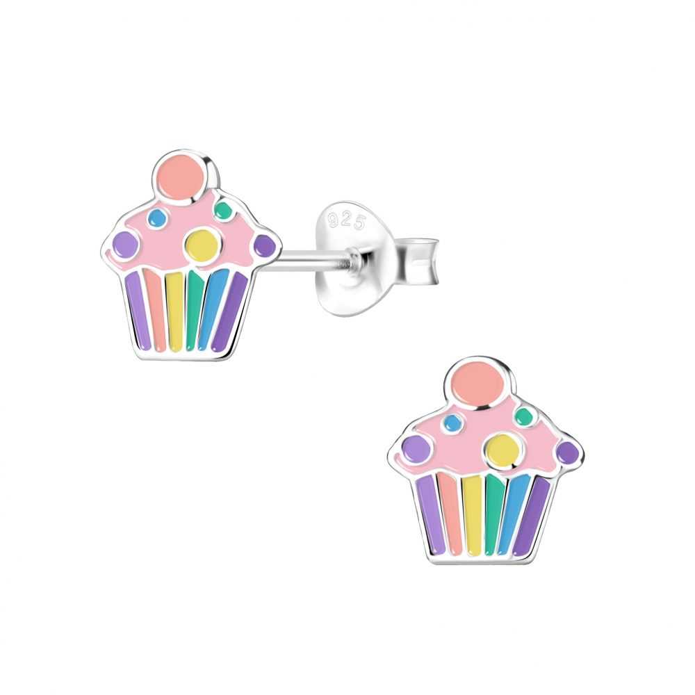 Kid's Sterling Silver Cupcake Earrings With Push Back Closure
