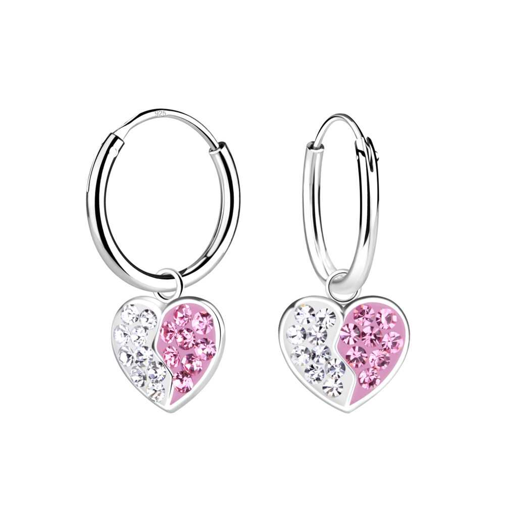 Kid's Sterling Silver Heart Dangle Earrings With Hoop Closure