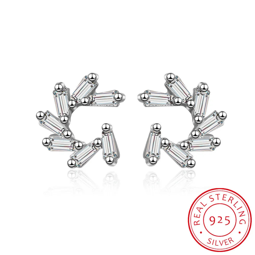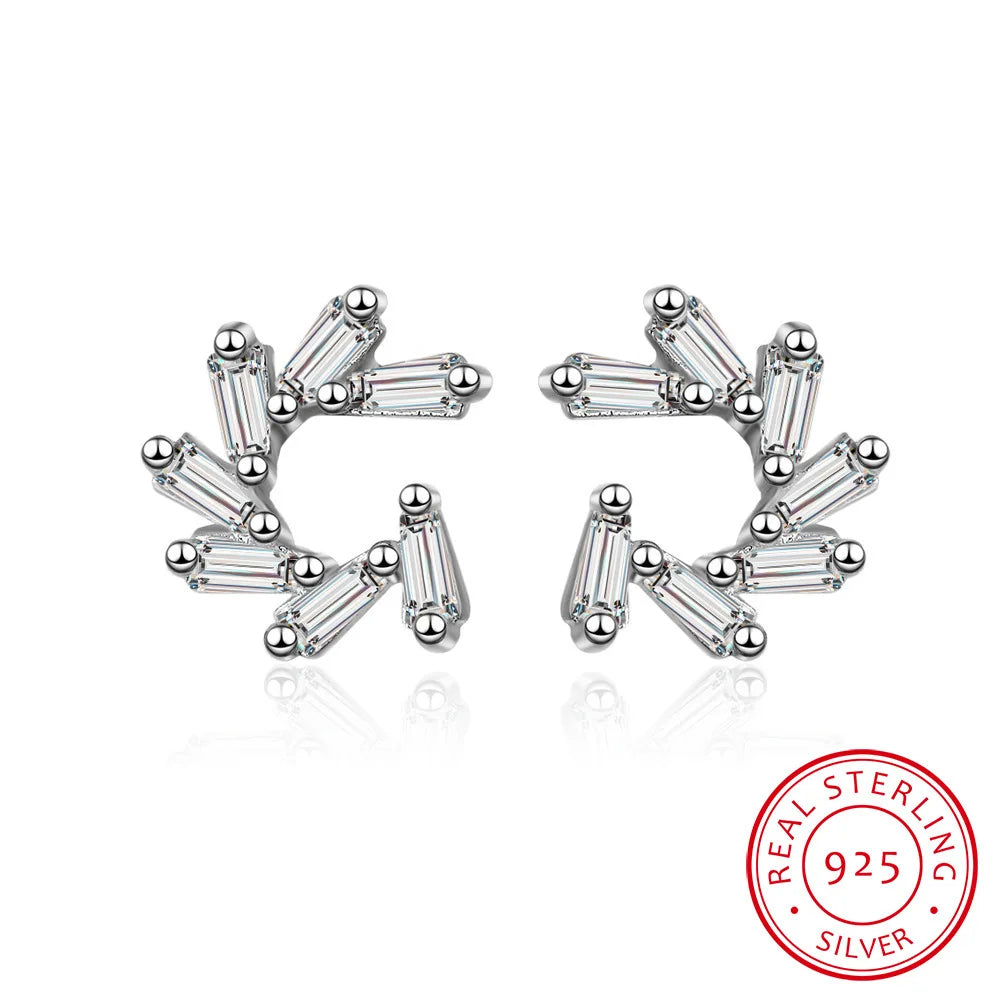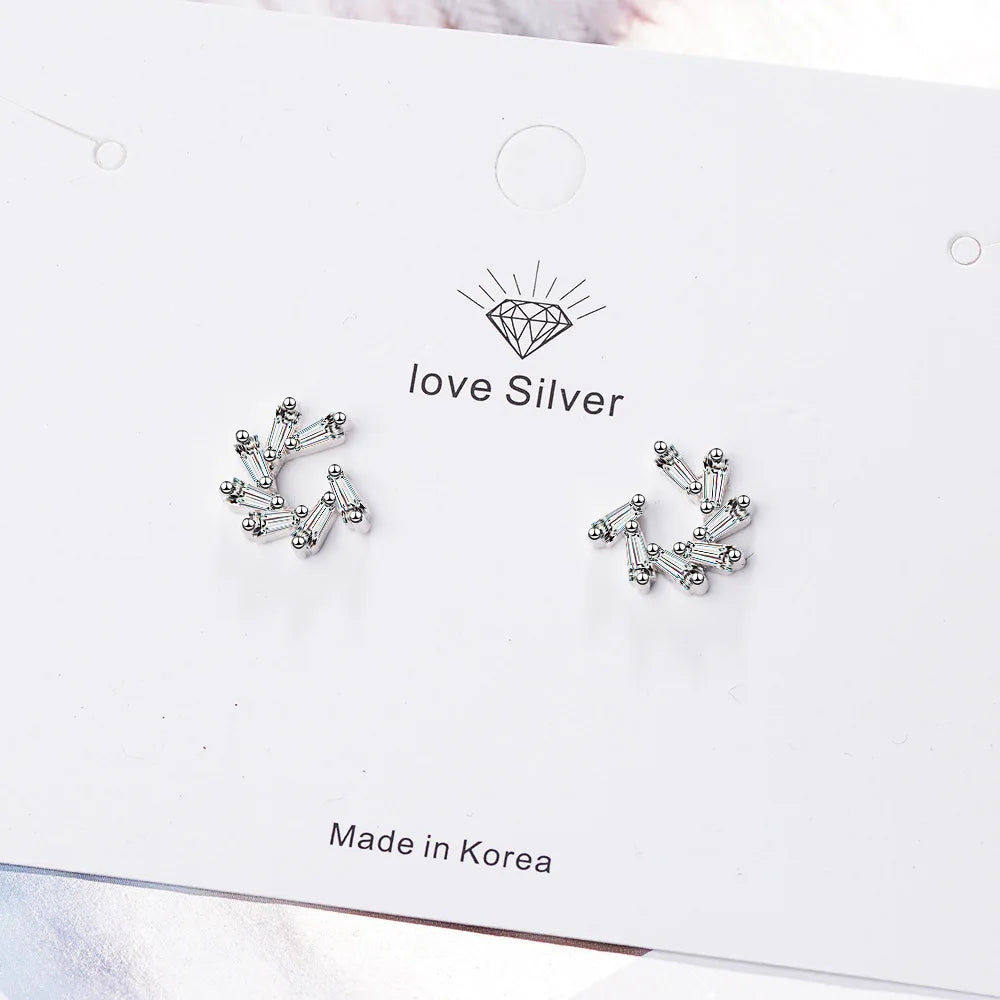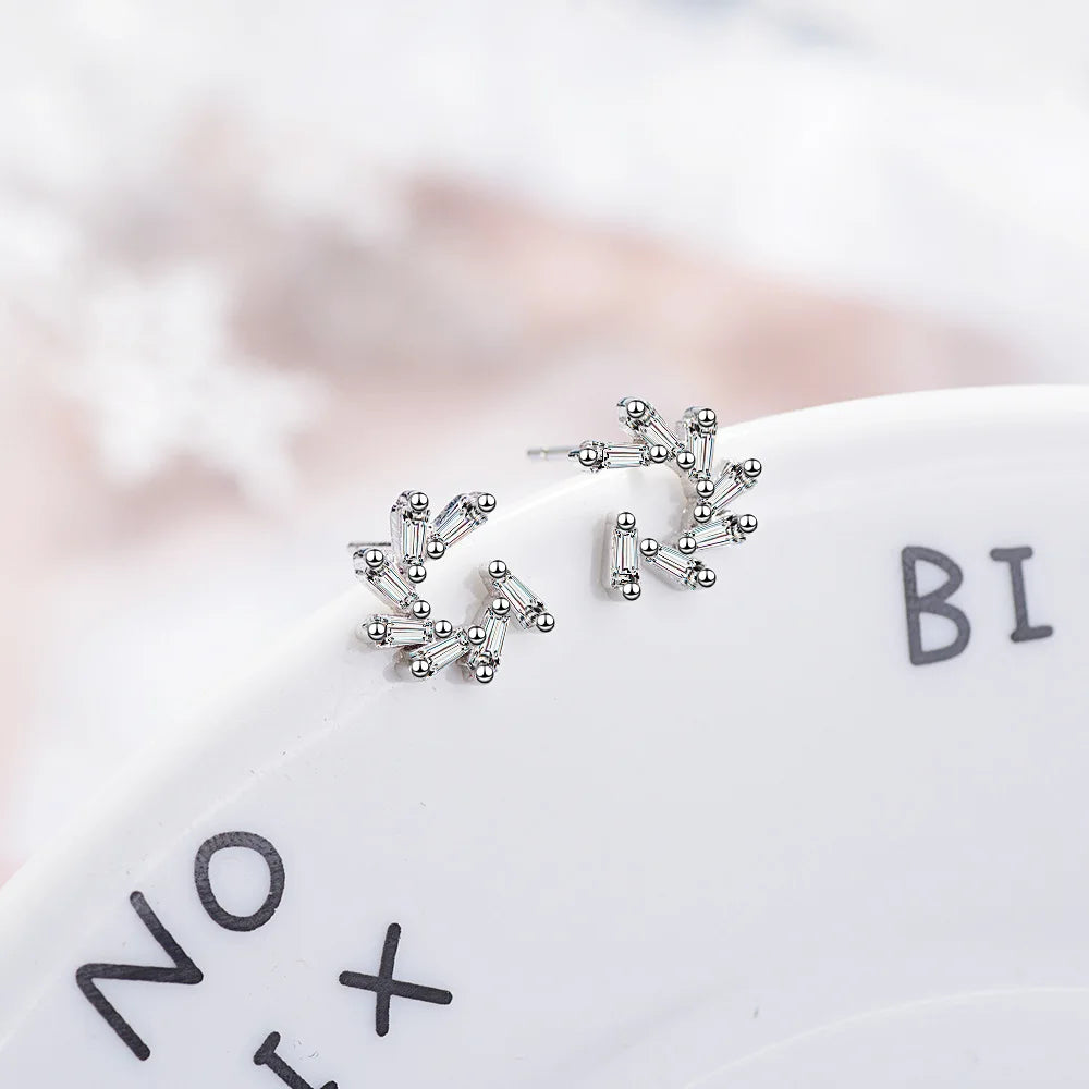Enhance your style with these stunning Korea style earrings featuring clear CZ flower design. Crafted from 925 sterling silver, these C shape earrings are fine jewelry pieces that add elegance to any outfit.