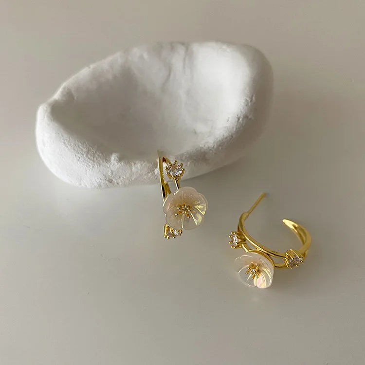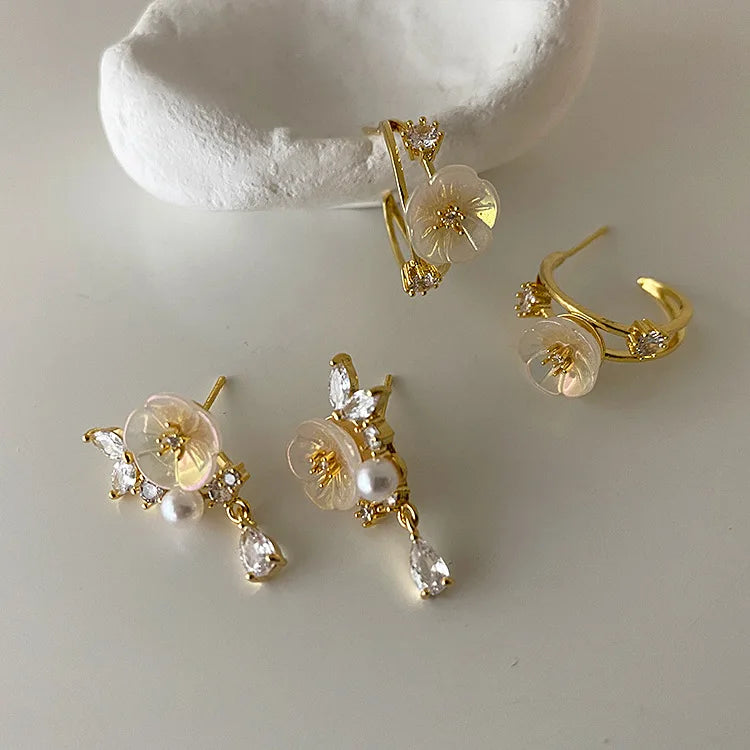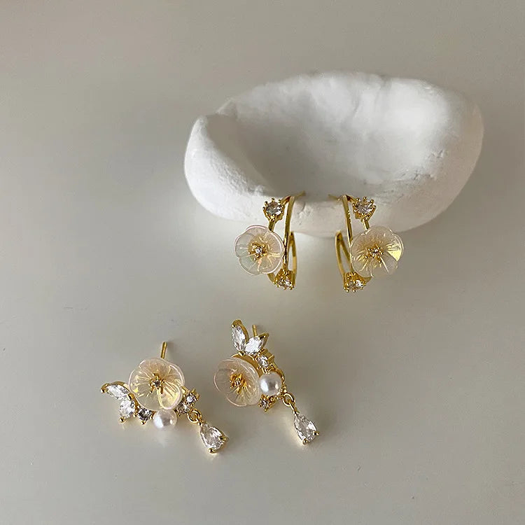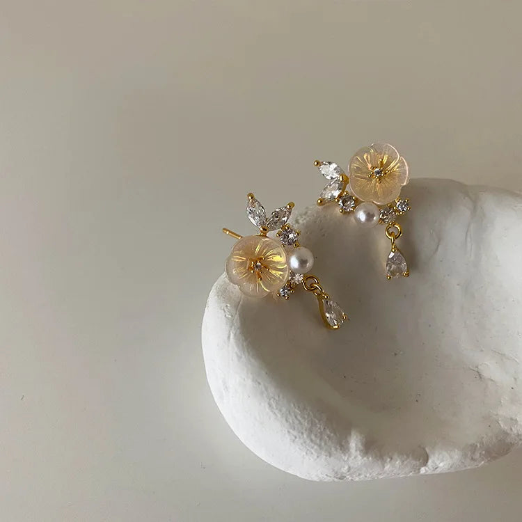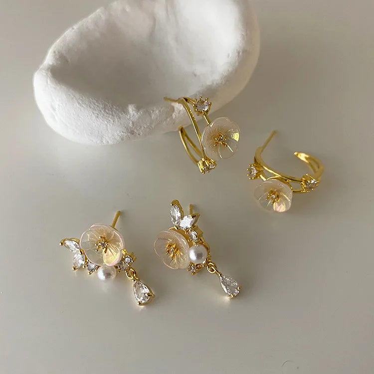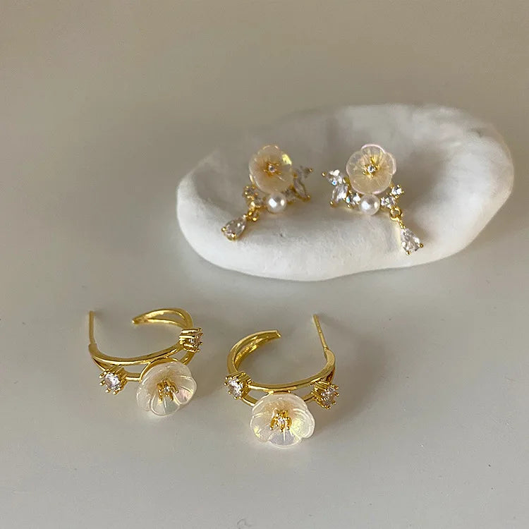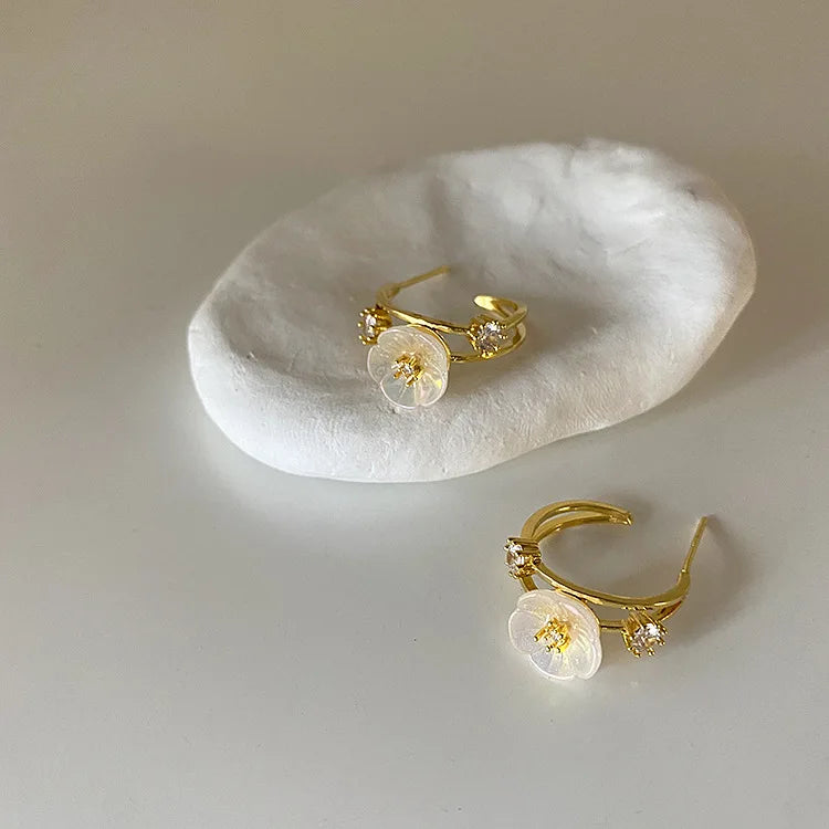 Korea Jewelry 14K Plated Crystal Flower Earrings