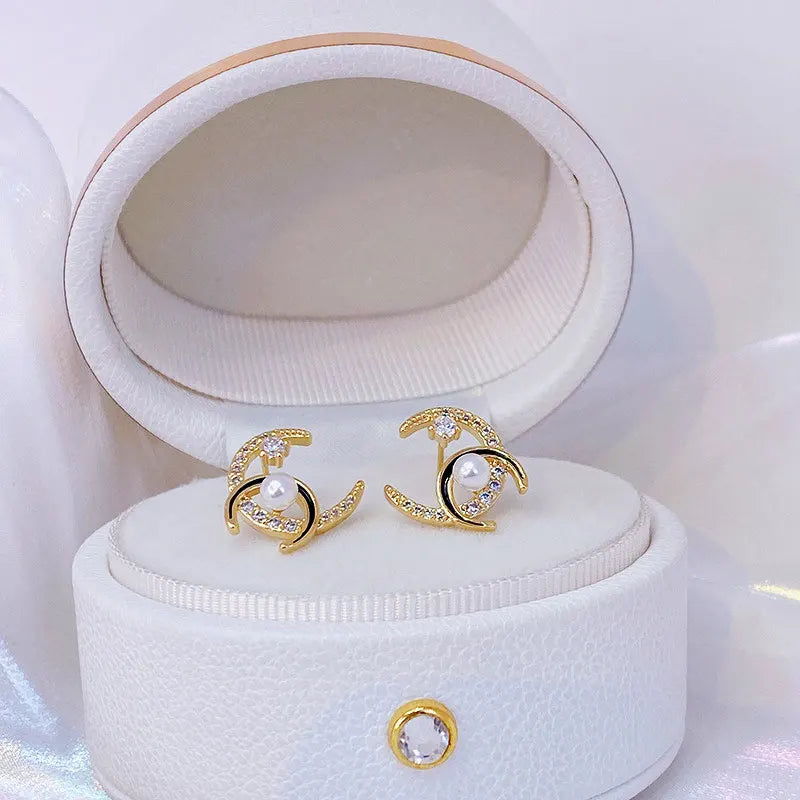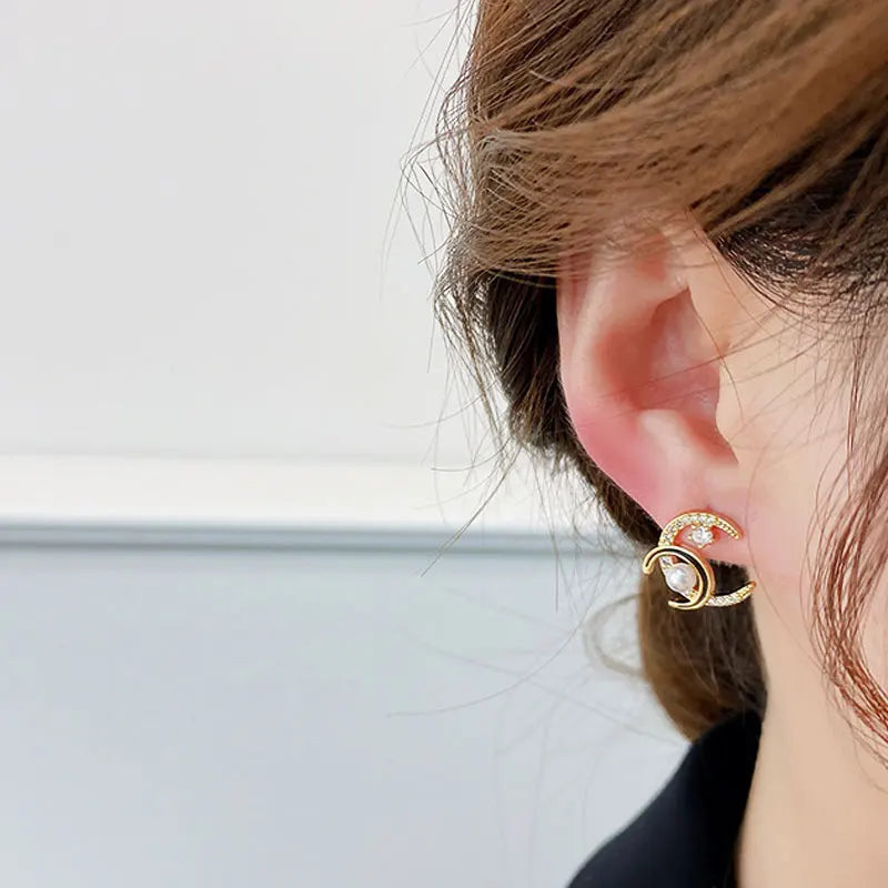 Korea Sweet Stars Ear Stud Jewelry Micro Inlaid Pearl Earrings