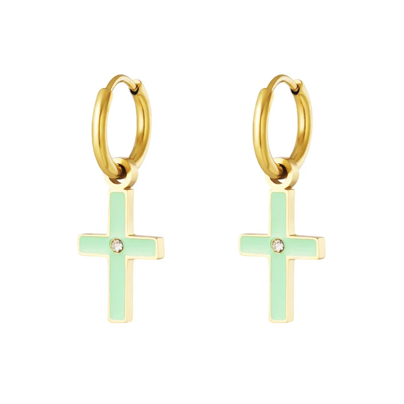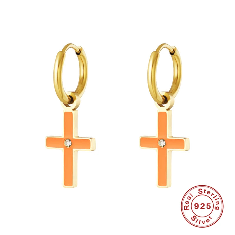 - 925 silver hoop earrings with heart cross designs