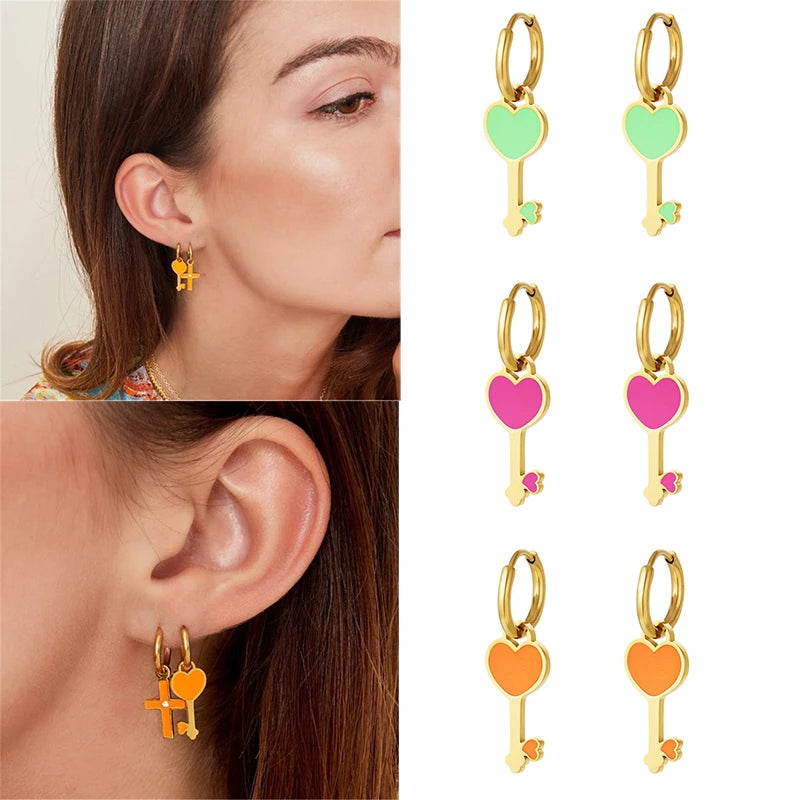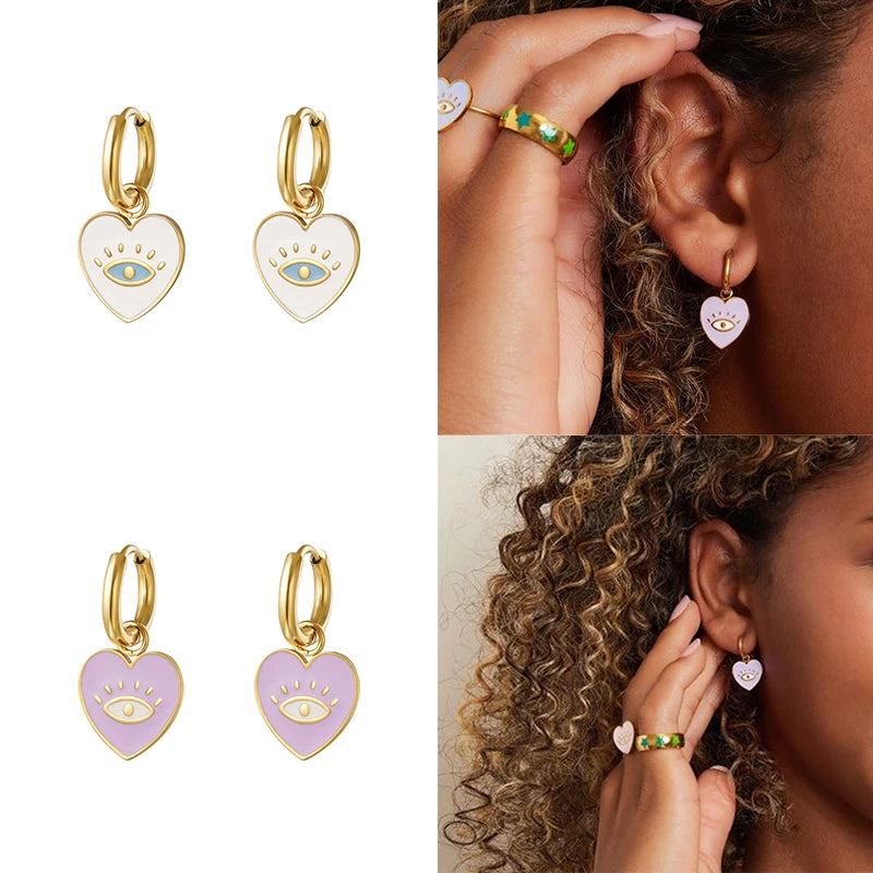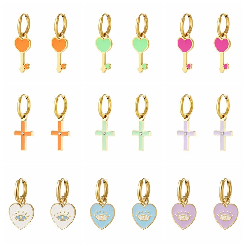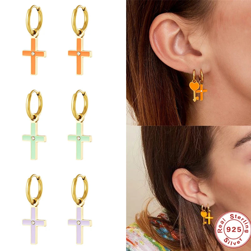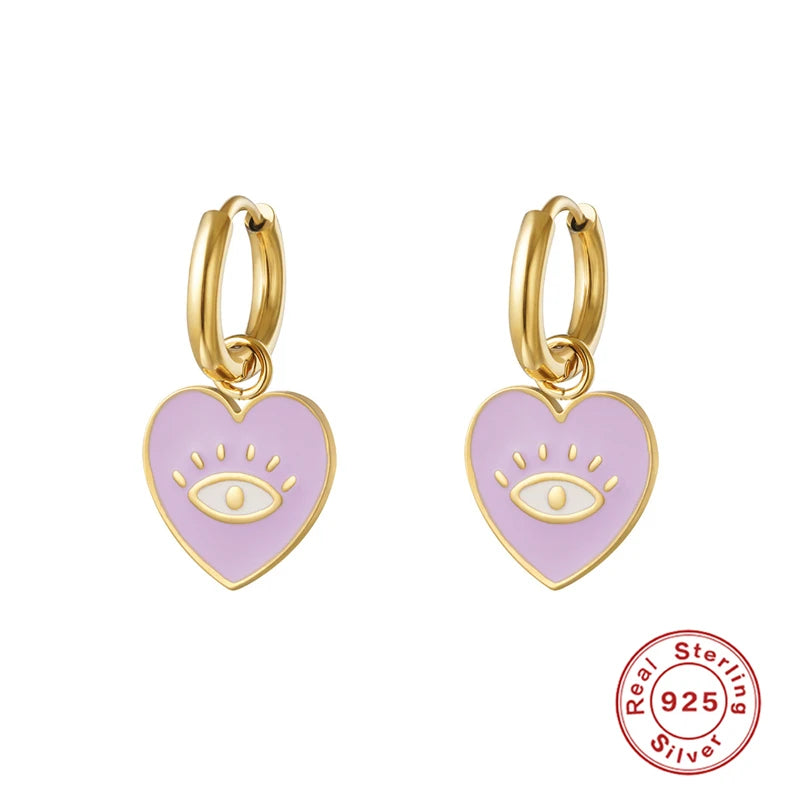 These beautiful hoop earrings are made from high-quality 925 silver with purple and pink heart cross designs. A stylish and trendy addition to your jewelry collection.