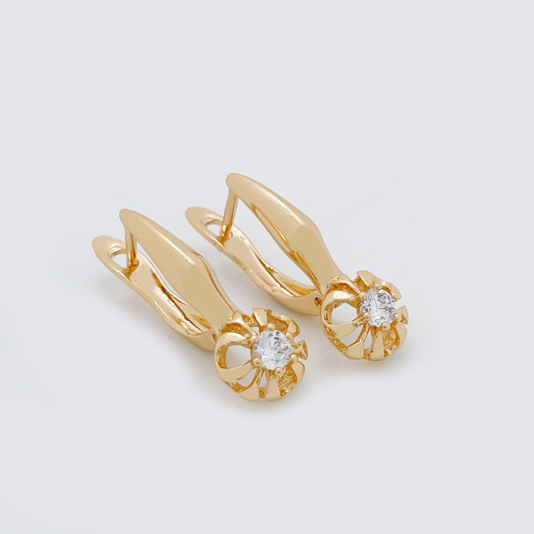 Gorgeous 18K Rose Gold Filled earrings with natural zircon stones, perfect for weddings or parties.