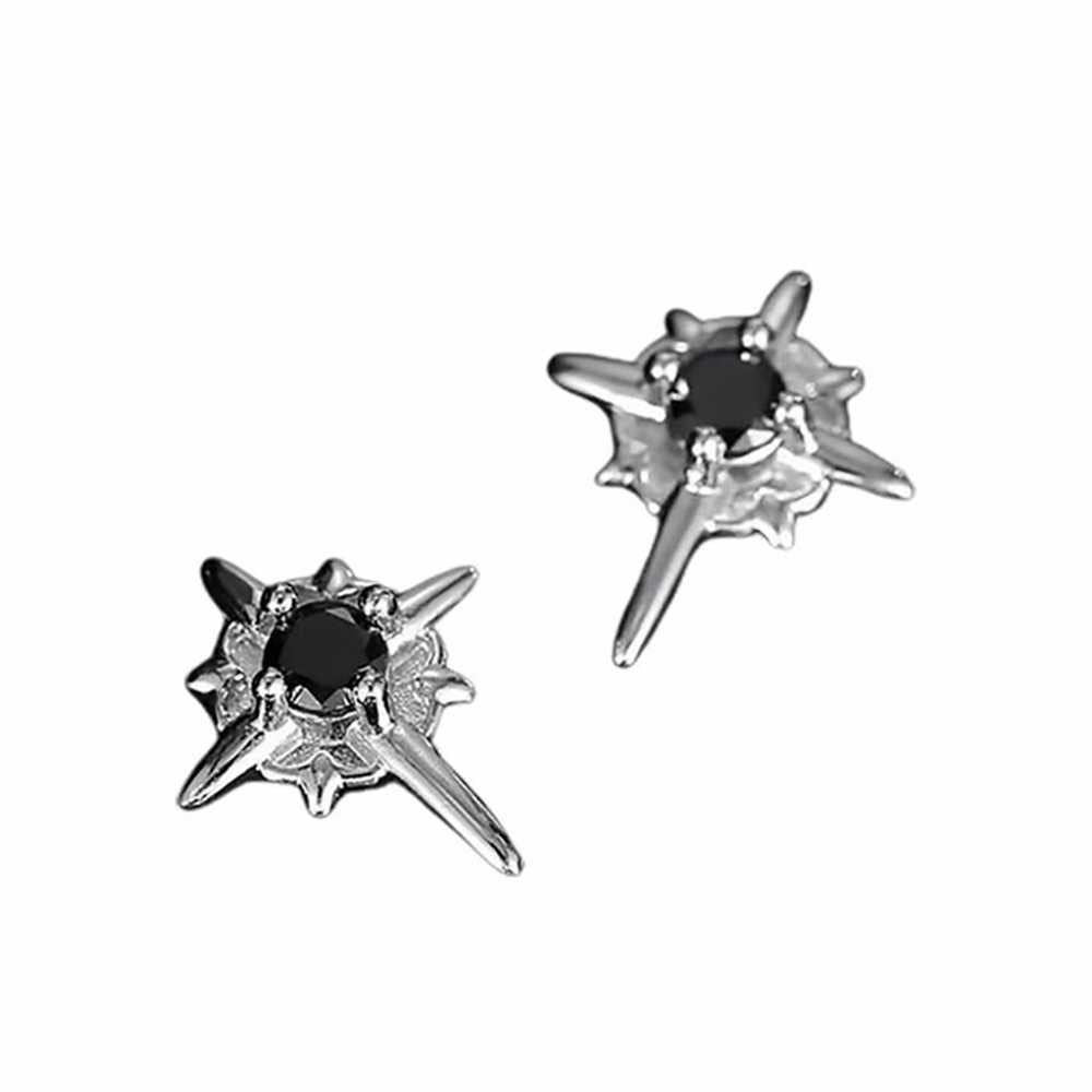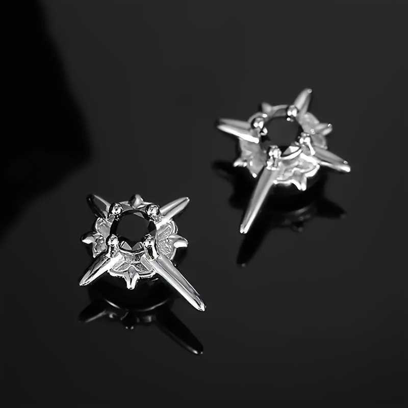 Men's Silver Plated Black Zirconia Star Cross Stud Earrings