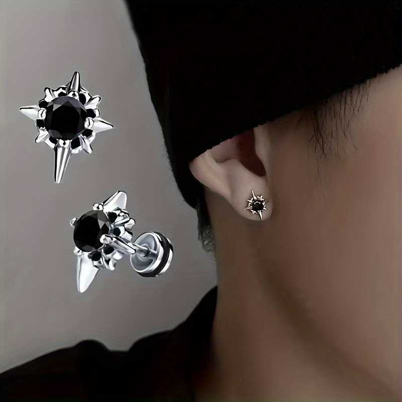 Bling Queen is an affordable fashion jewellery brand with various product types like bracelets, necklaces, earrings, rings, etc. suitable for women, men and kids. The Men's Silver Plated Black Zirconia Star Cross Stud Earrings are a striking fusion of sophistication and bold design. These earrings are meticulously crafted with a silver plated finish that offers a lustrous sheen, adding a touch of elegance to any ensemble. The silver plating not only enhances the visual appeal but also provides a timeless look that complements various styles. At the center of these earrings is the captivating star cross motif, a powerful symbol that signifies individuality and strength. This design element serves as a focal point, drawing attention and making a statement. Each stud is adorned with glossy black zirconia stones, which provide a contrast against the shiny silver background. The deep, rich hue of the zirconia enhances the overall aesthetic, making these earrings suitable for both casual outings and formal occasions.