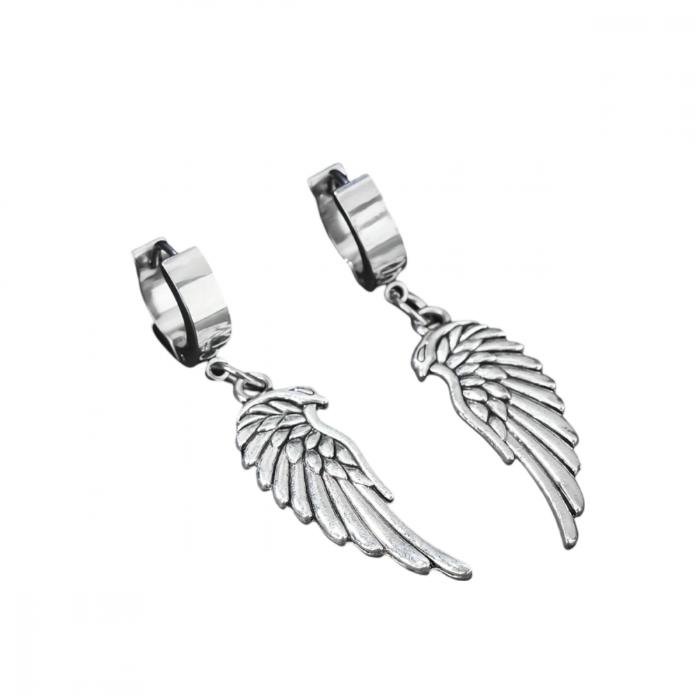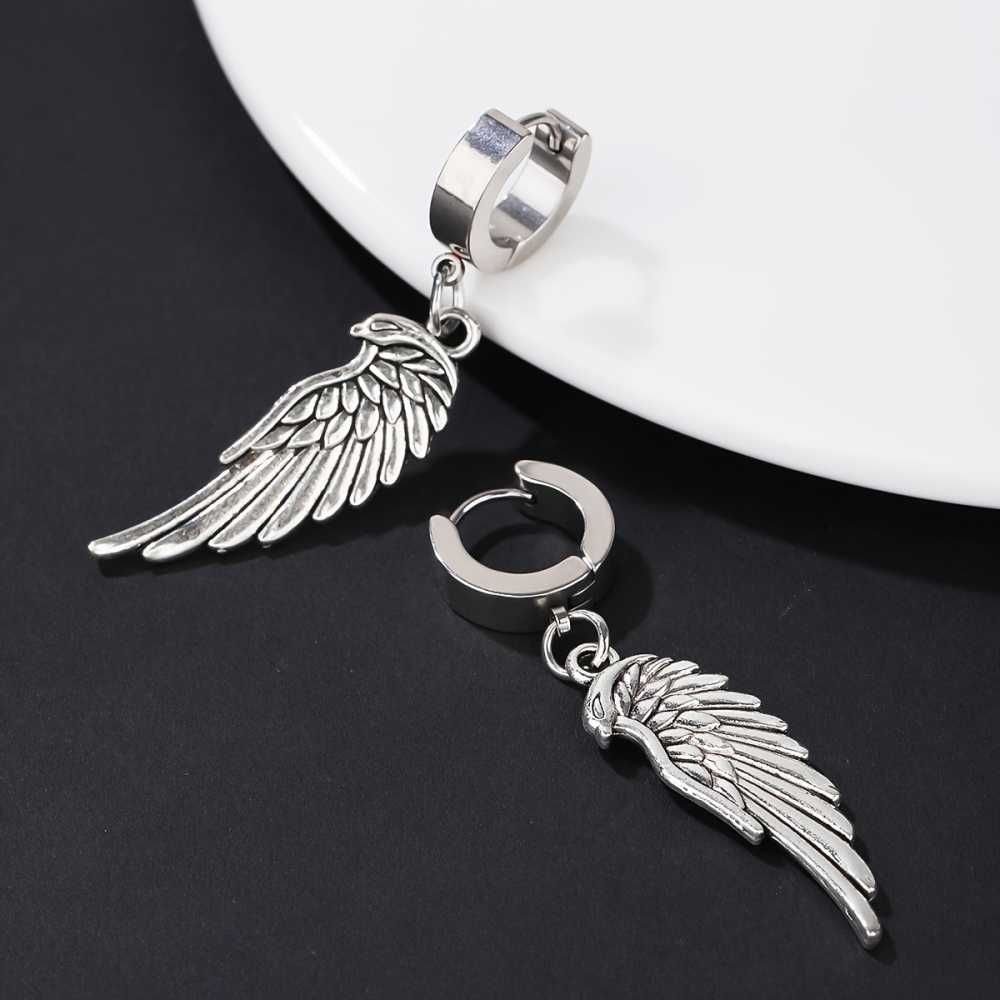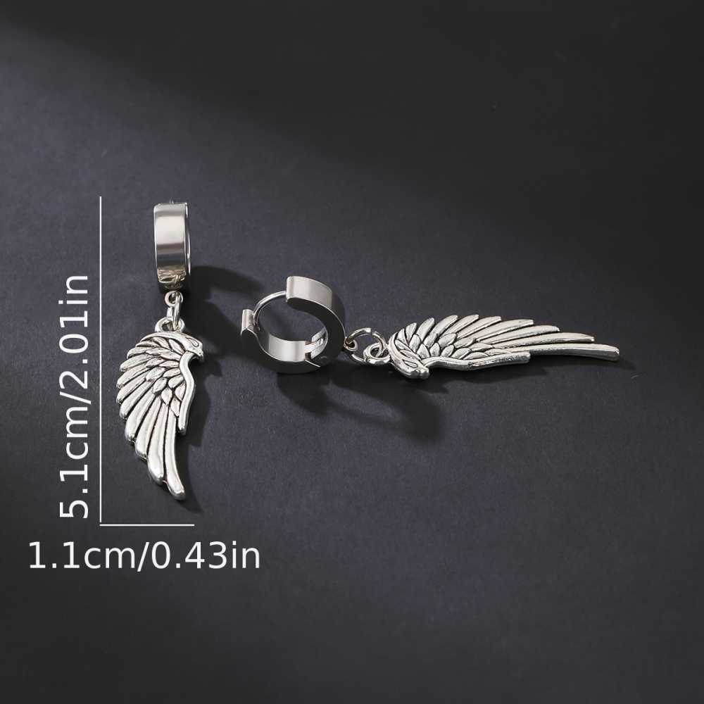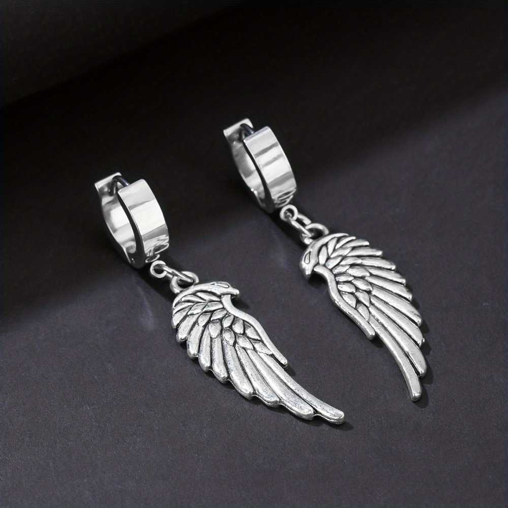 Men's Silver Plated Eagle Wings Dangle Earrings For Bold Style
