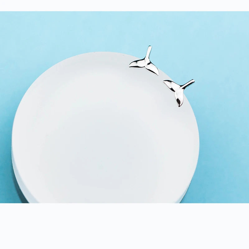 Elegant stud earrings featuring a mermaid fish tail design. Made with 18K silver plating, these earrings are a perfect accessory for women.