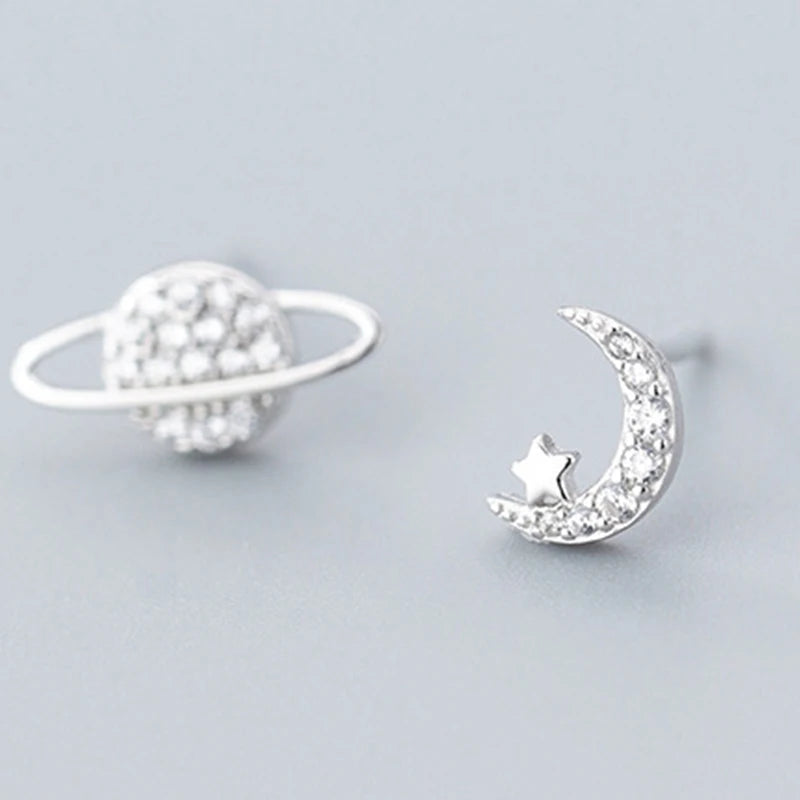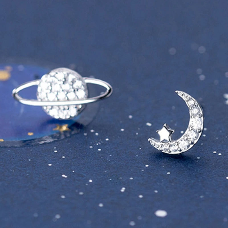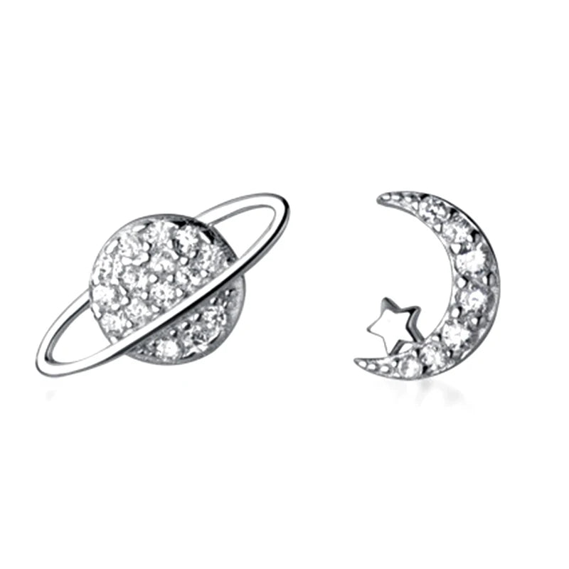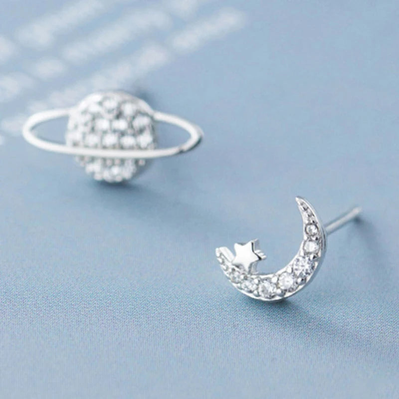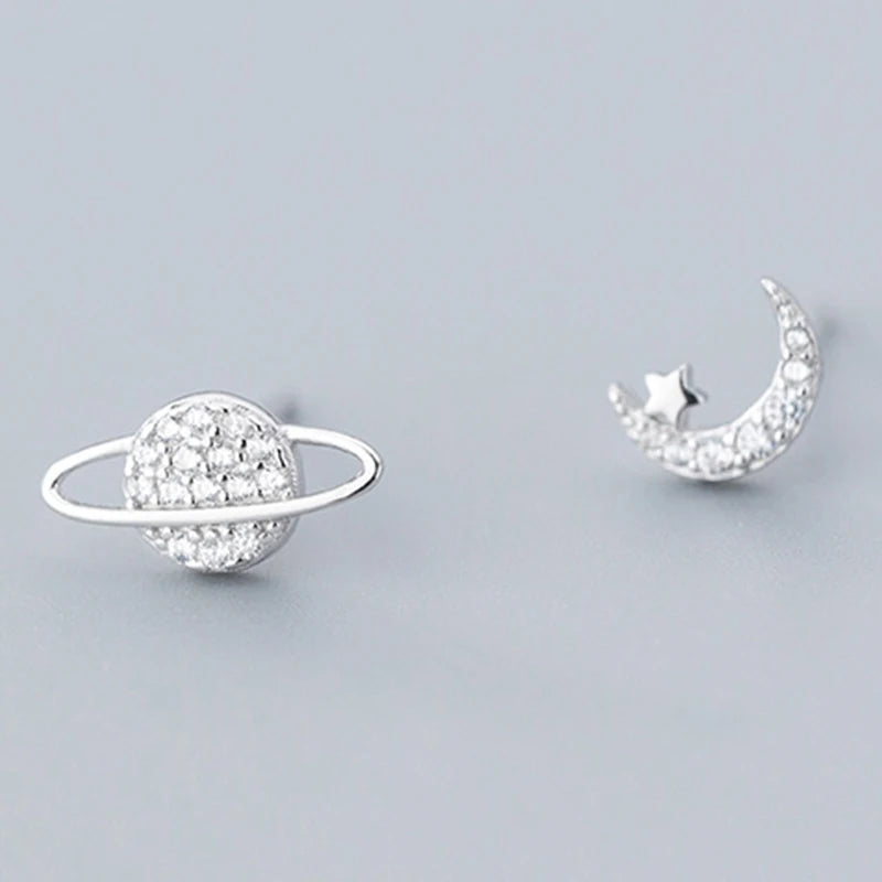 These romantic universe planet moon studs earrings are crafted from 925 sterling silver with sparkling zirconia crystals, making them a perfect accessory for women. Add a touch of personalized charm to your ensemble with these exquisite earrings.