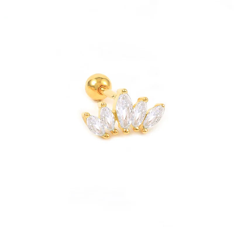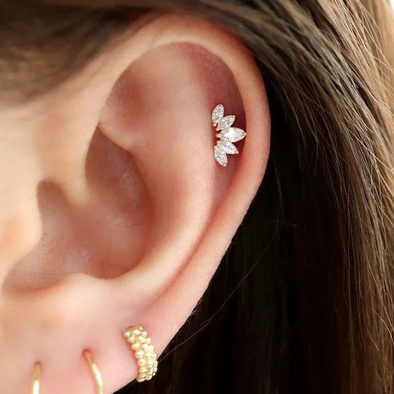 Multicolor Zircon Crown Stud Earrings 925 Sterling Silver Cartilage Piercing