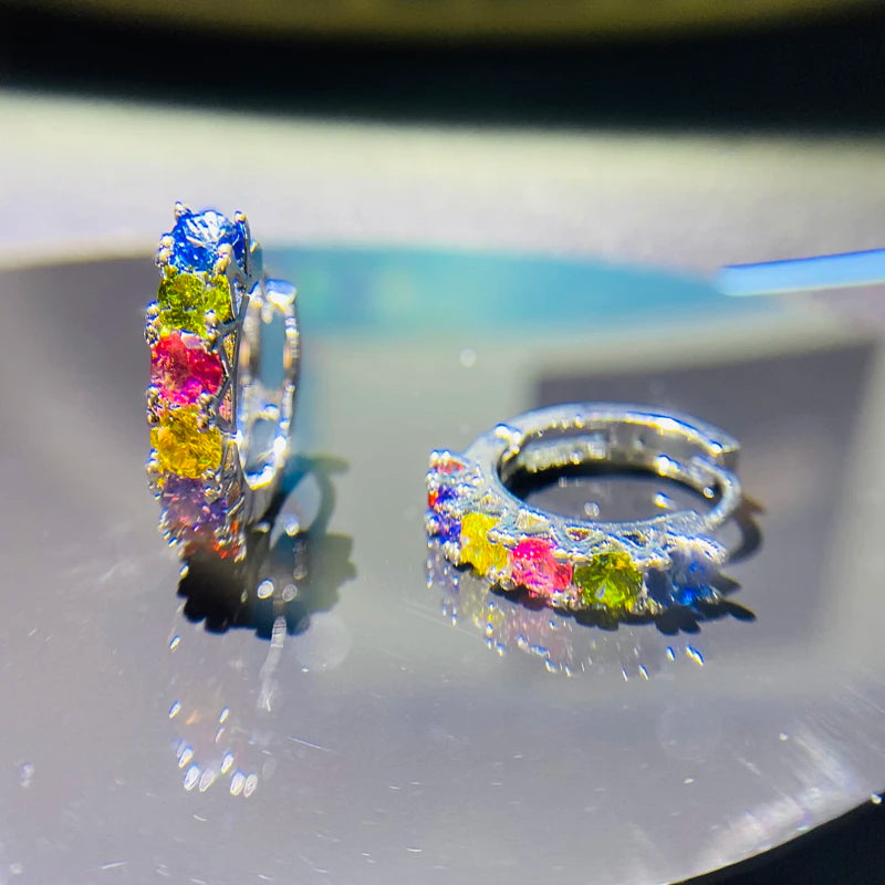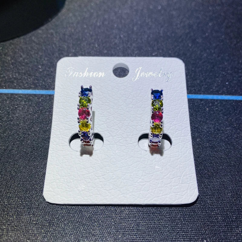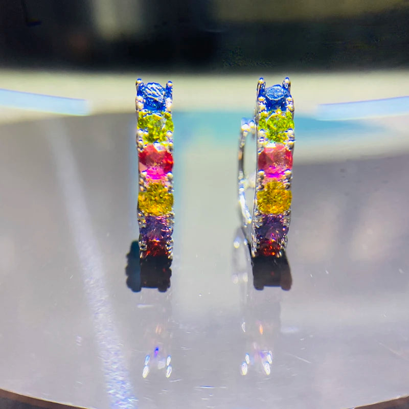 Elegant and delicate multicolor zircon crystal earrings made of 925 sterling silver. Perfect for women and girls, ideal for gifting. Stylish and eye-catching design.