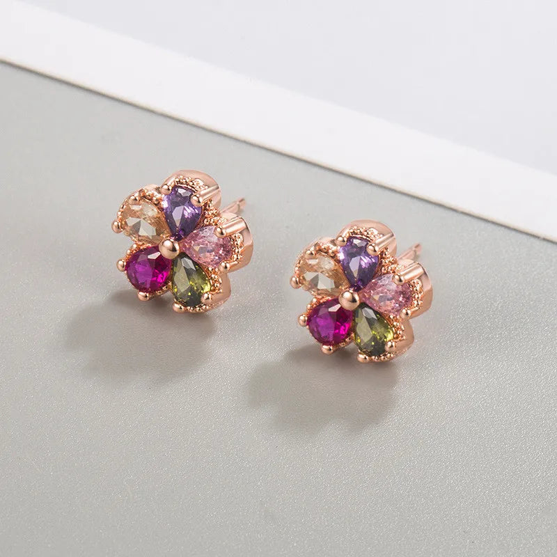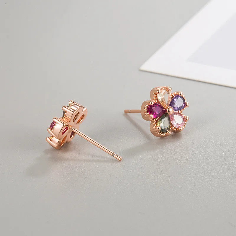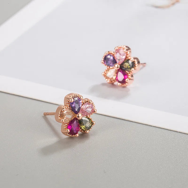 Enhance your style with these stunning multicolor zircon crystal flower stud earrings crafted from 925 sterling silver. Perfect for weddings, engagements, or as a gift.