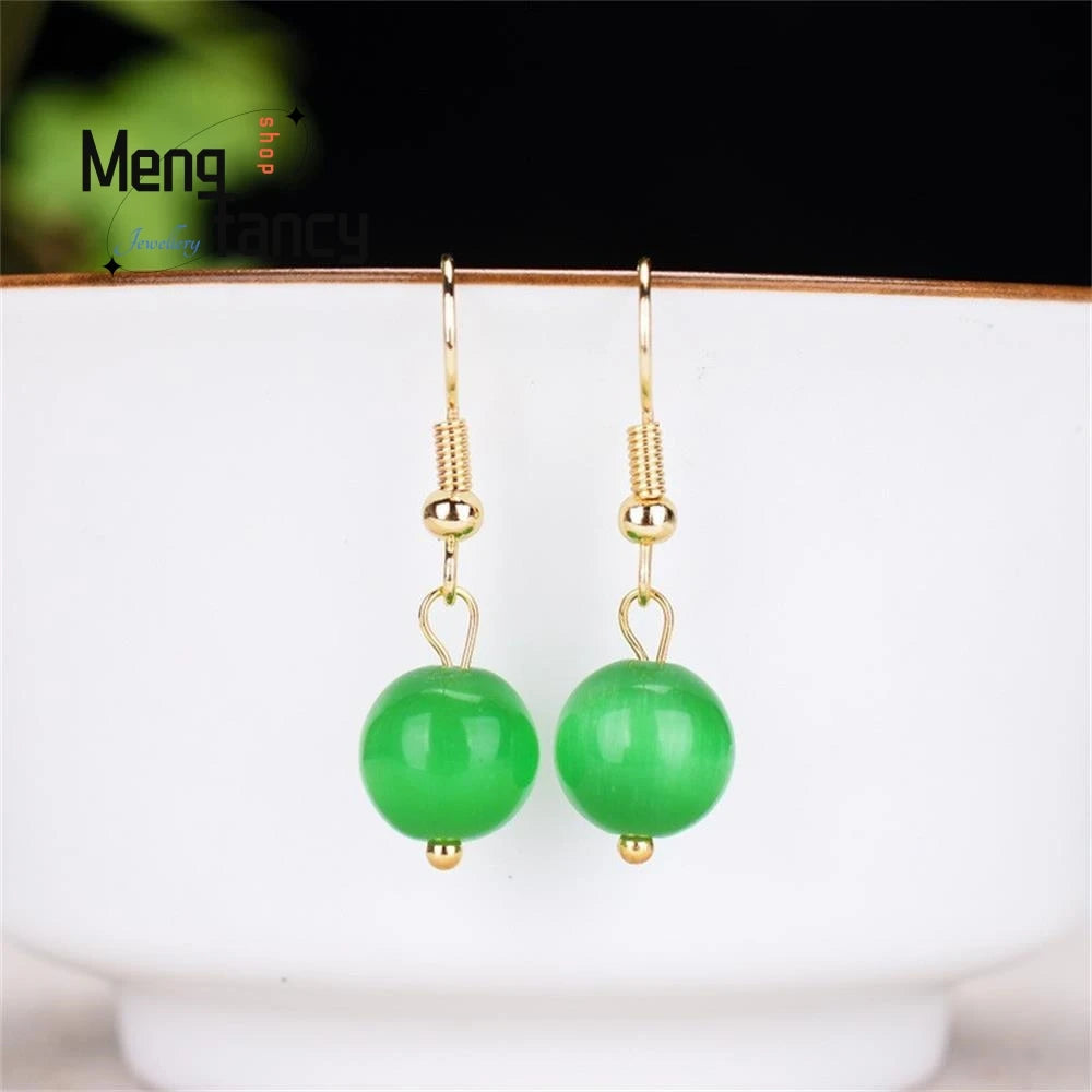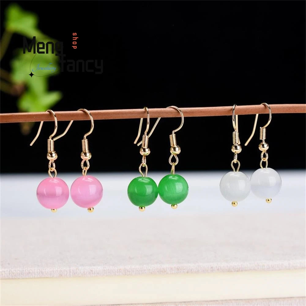 Natural Cat's Eye Earrings 925 Silver Personalized Charms Jewelry
