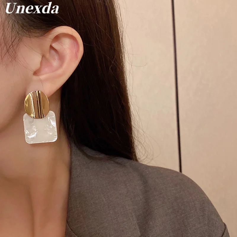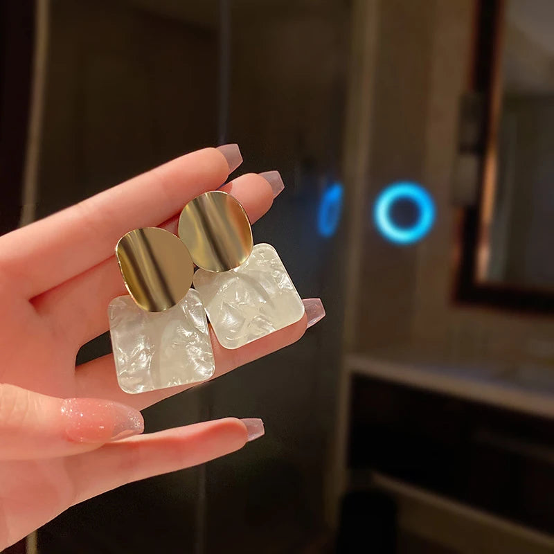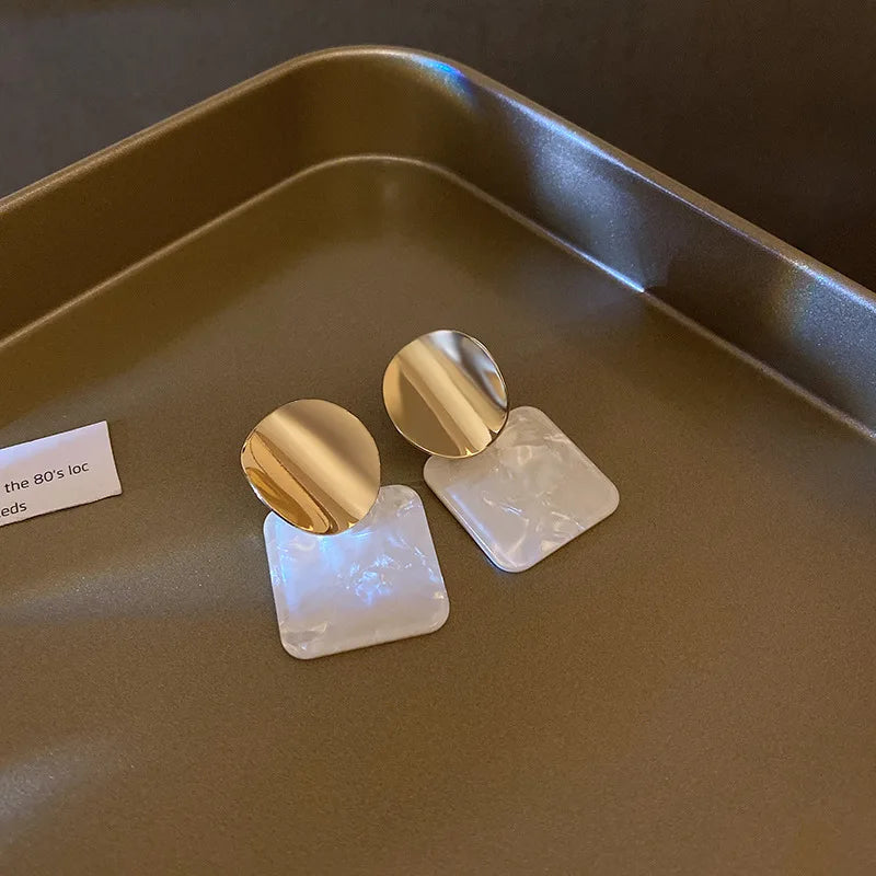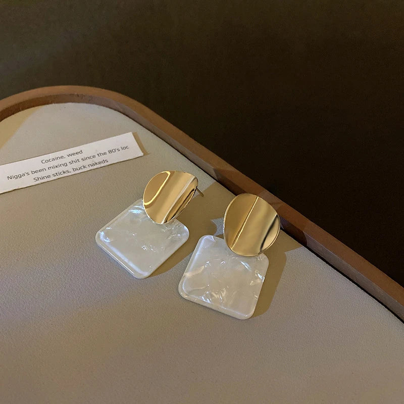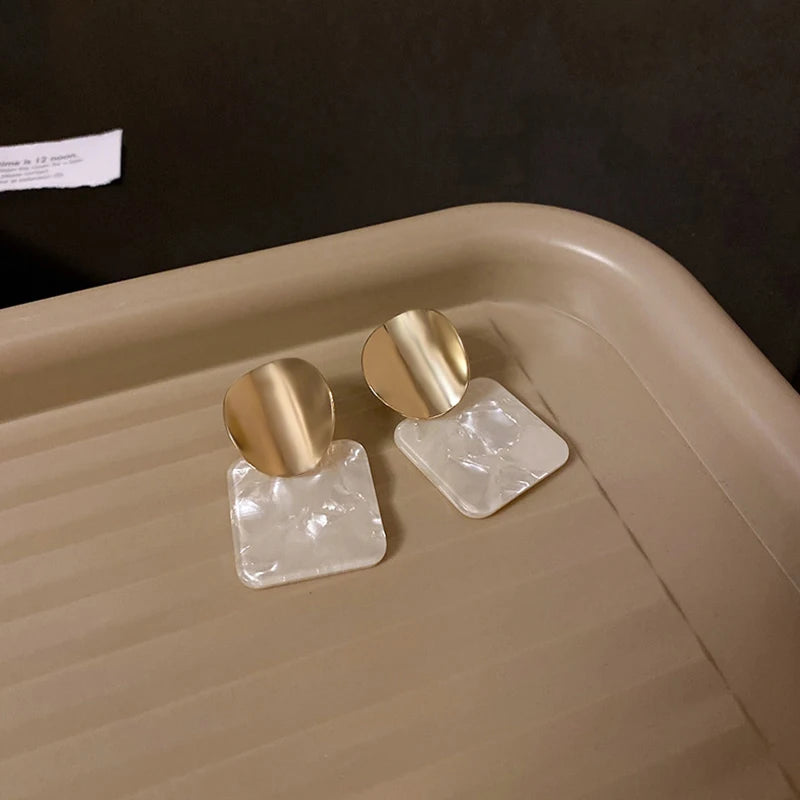 These earrings feature a retro design with mother-of-pearl square detail, offering a unique and high-end style for women.