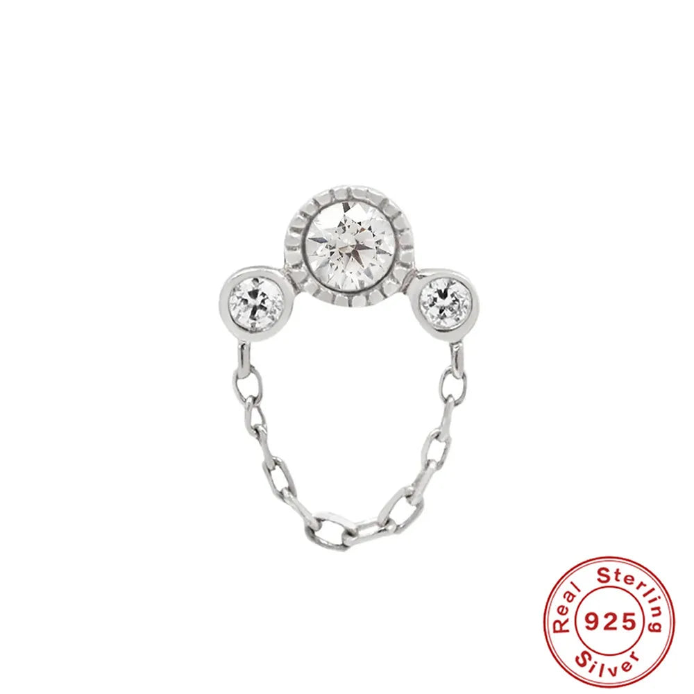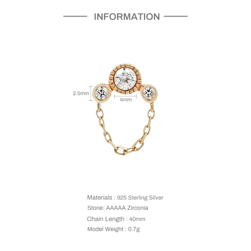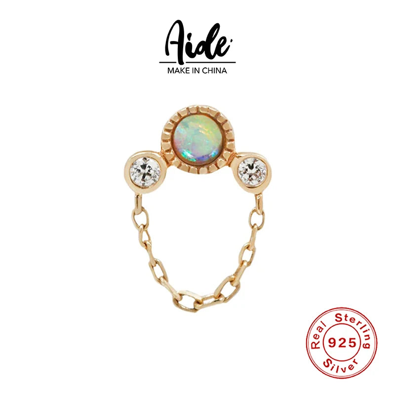 Add a touch of wild elegance to your outfit with this opal piercing chain stud earring. Made of 925 sterling silver, featuring a tassel design with diamond inlay. Ideal holiday or Christmas gift.