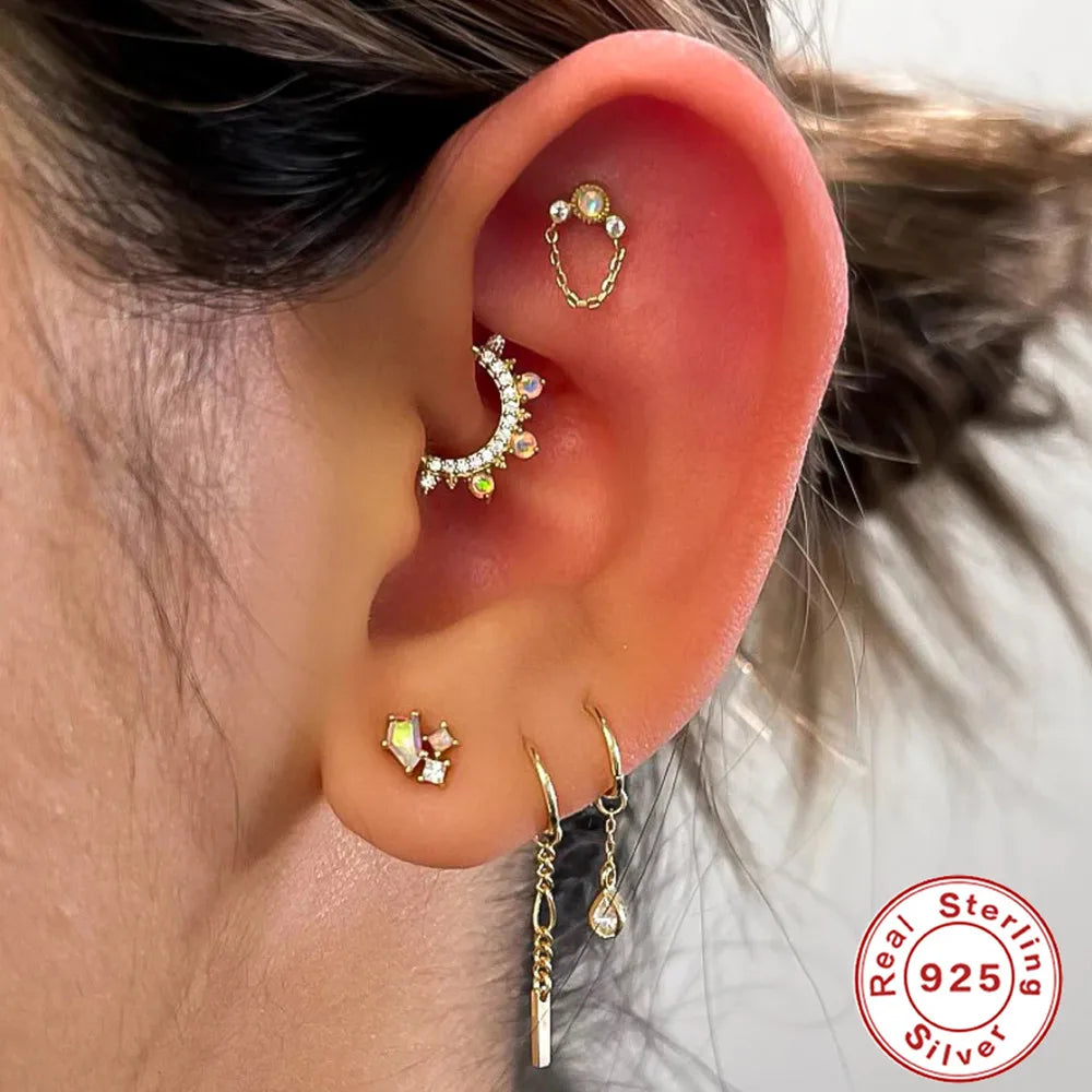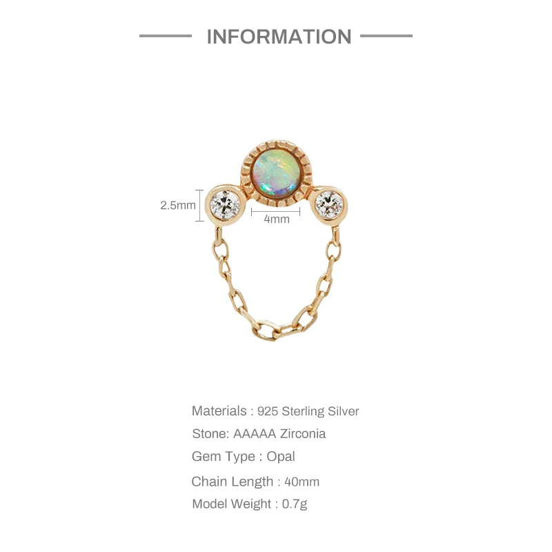 This elegant pair of chain earrings feature opal and zircon stones in 925 sterling silver. Perfect for teens and women who love silver jewelry.