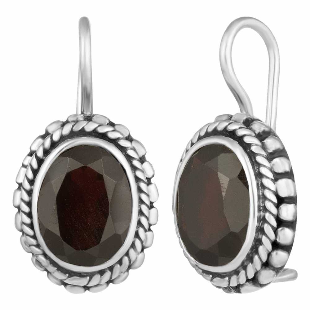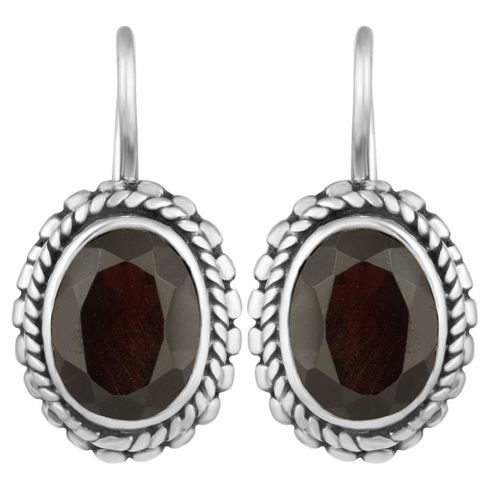 Oxidized Silver Plated Fish Hook Earring, Oval Garnet Stone