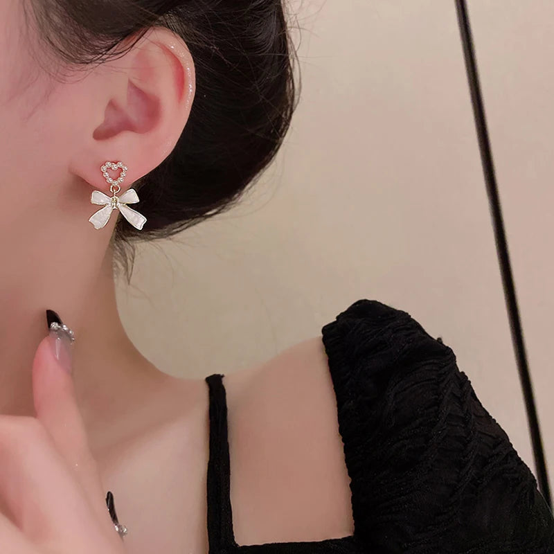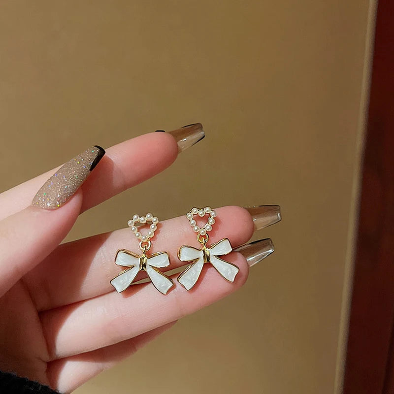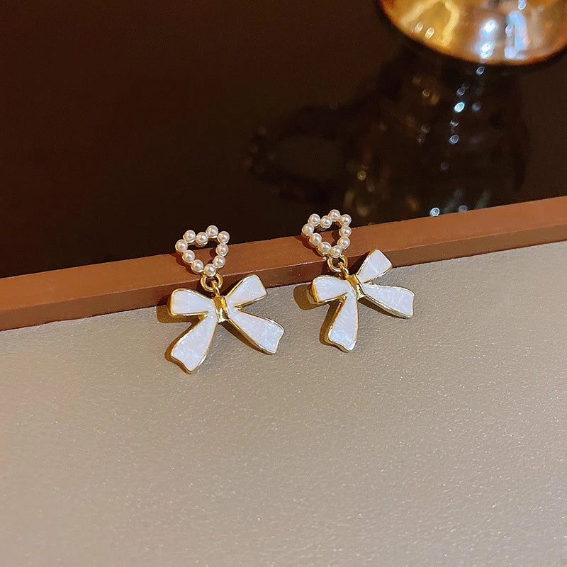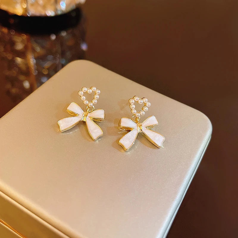 Pearl Bow Earrings Women Niche Earrings Temperament Versatile Earring
