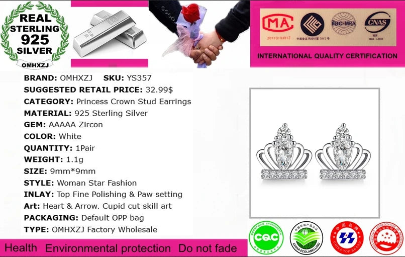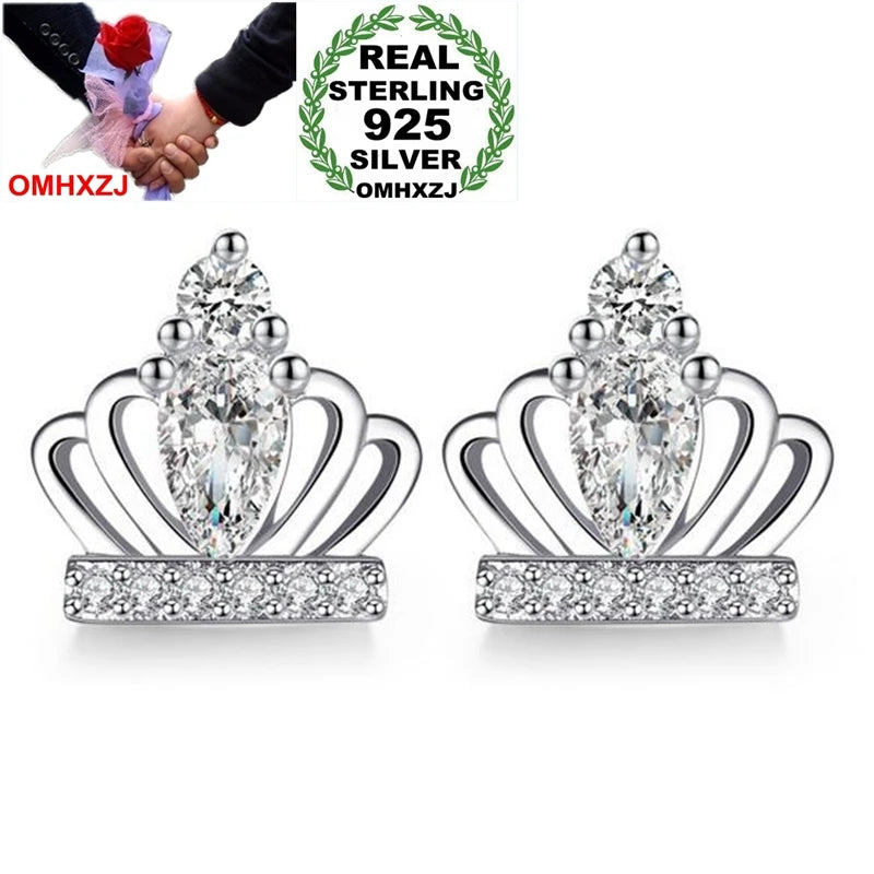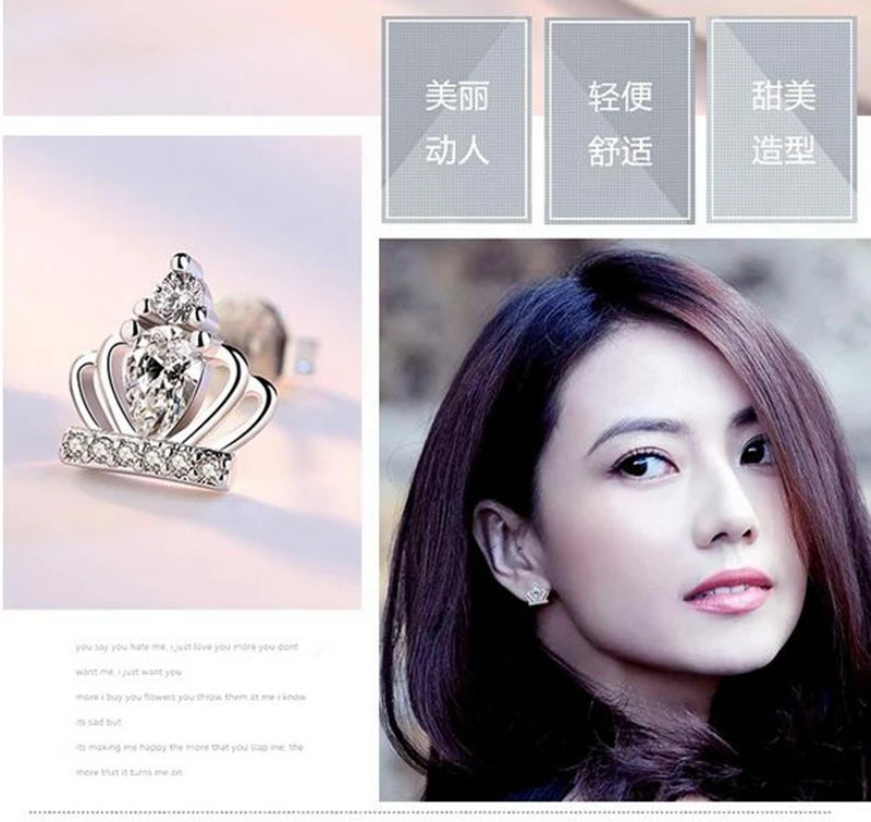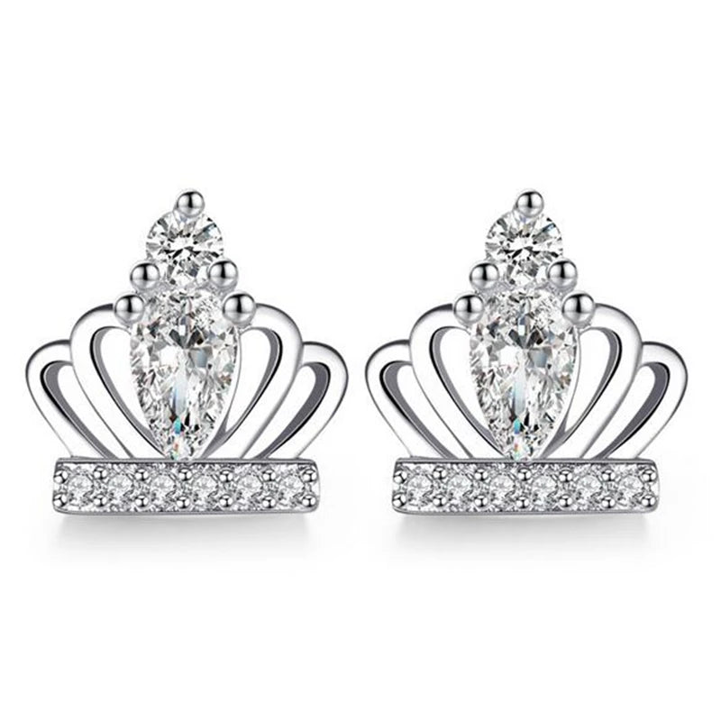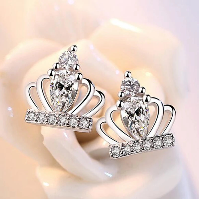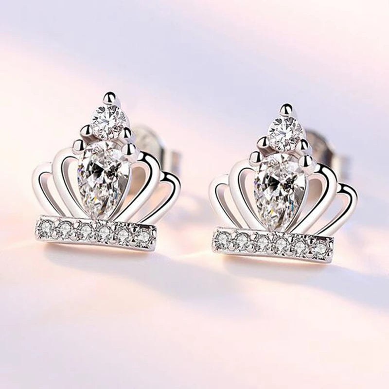 Adorn yourself with these elegant Princess Crown Zircon stud earrings made of 925 sterling silver, perfect for weddings or as a gift for a special woman or girl.