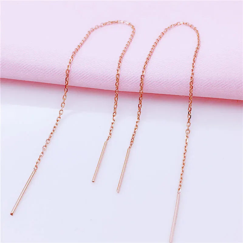 Purple Plated 14K Rose Long Chain Earrings for Women