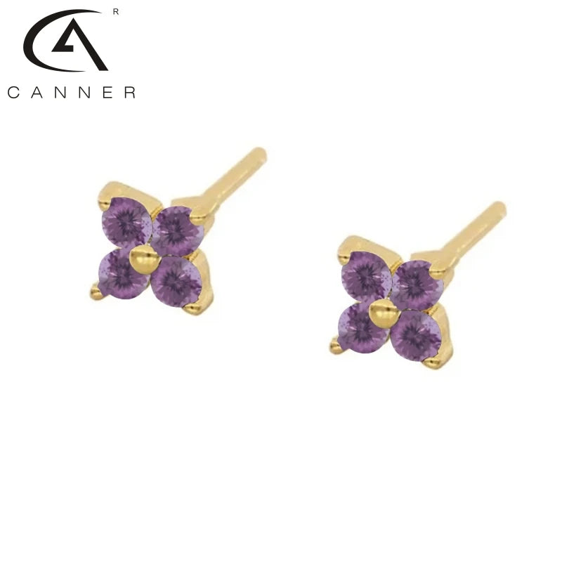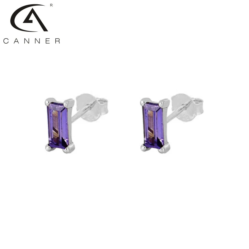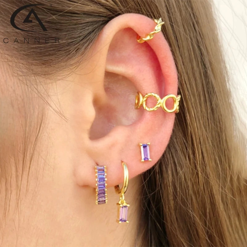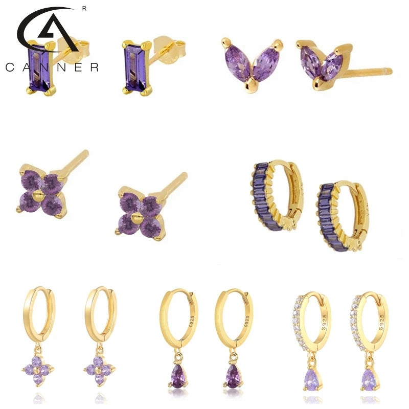 - 925 sterling silver hoop earrings with purple zirconia stones