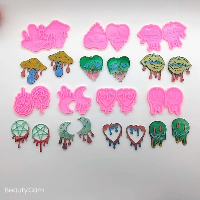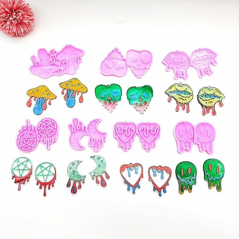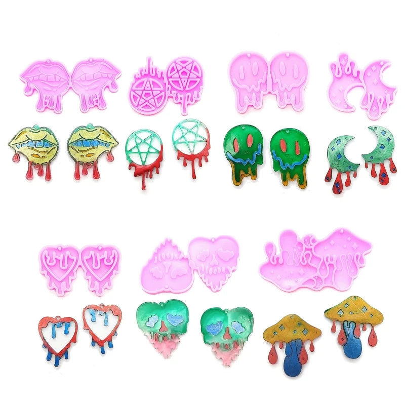 Create unique earrings with this 7-piece set of resin molds. Ideal for DIY crafts, these molds allow you to design and cast your own jewelry. Perfect for crafting enthusiasts!