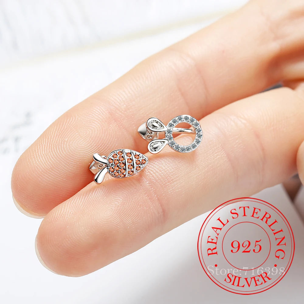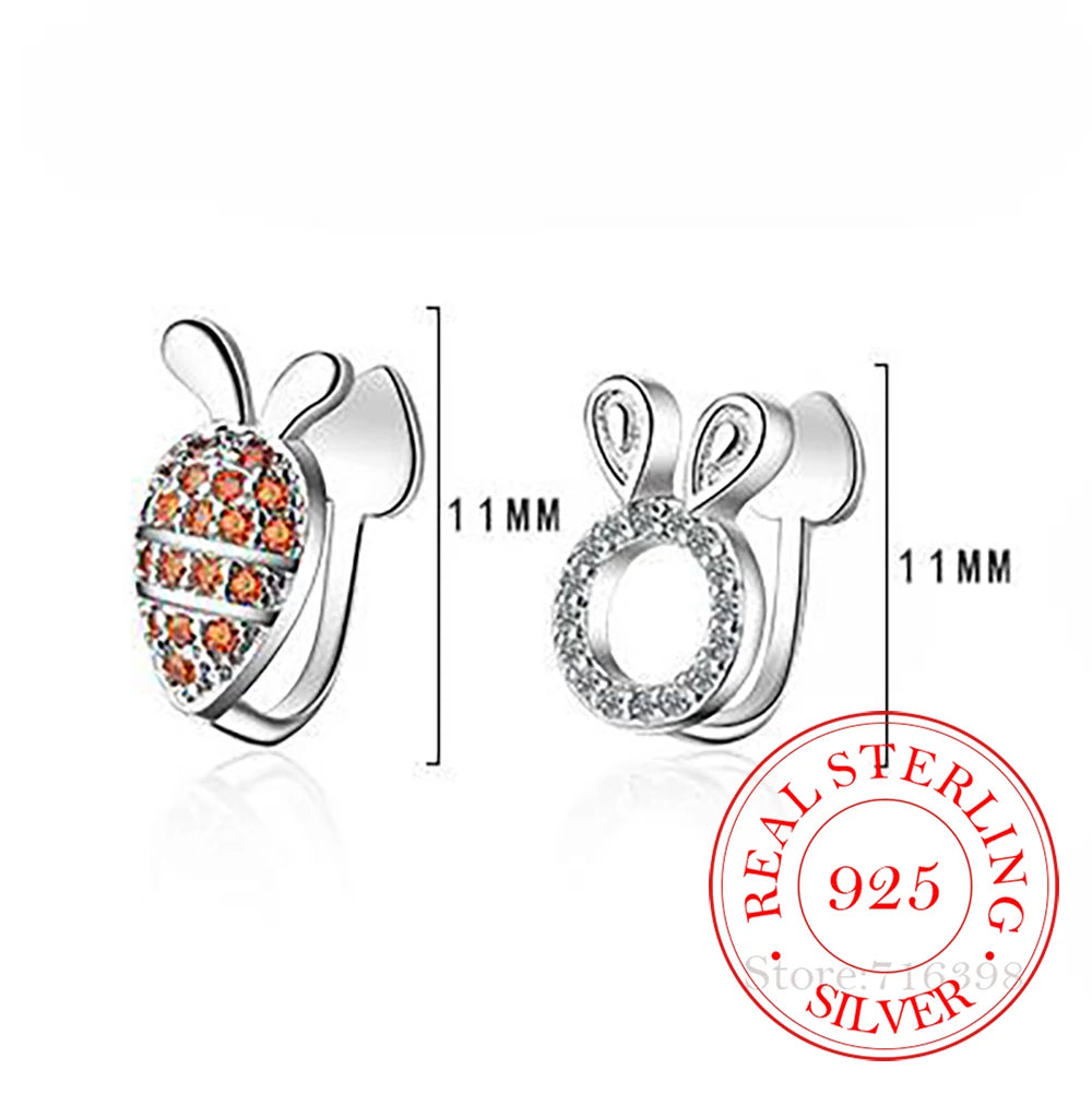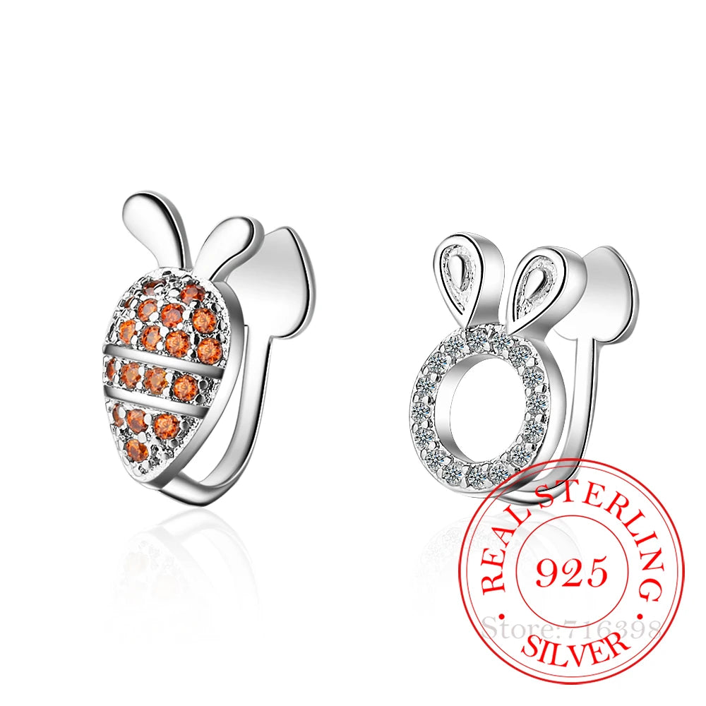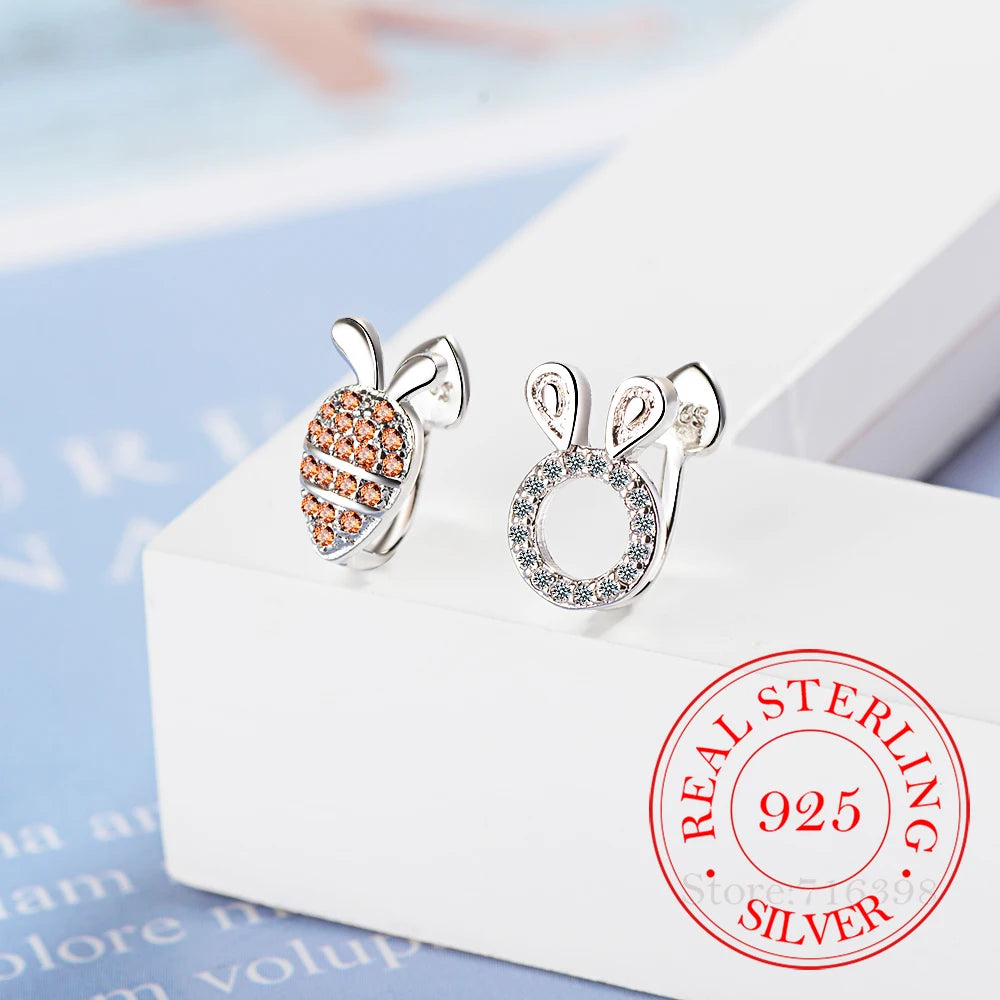 Adorable rabbit and carrot design ear cuff clip earrings made of 925 sterling silver, perfect for women, girls, students, and kids.